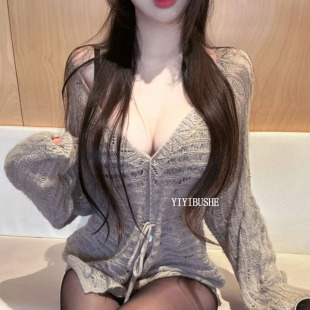 性感纯欲镂空收腰针织开衫 当天发 LP032独特超好看 正品 韩国代购
