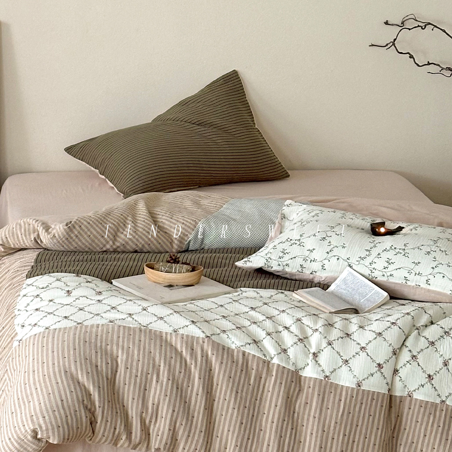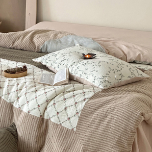 Tender 复古全棉双层纱四件套纯棉拼接提花床笠秋冬床上用品 法式