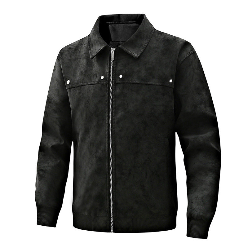 eihey诶嘿2025秋冬美式 夹克pu皮衣外套 复古做旧铆钉钉珠设计长袖