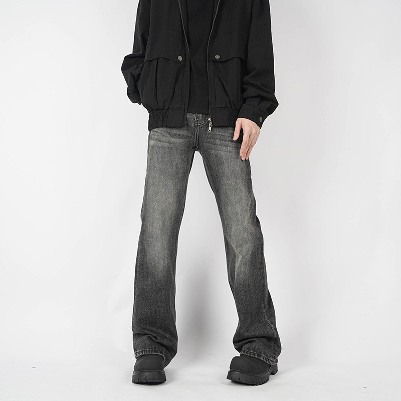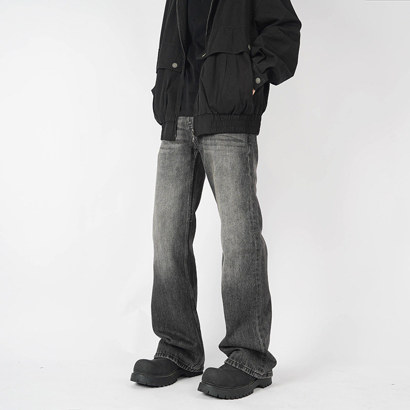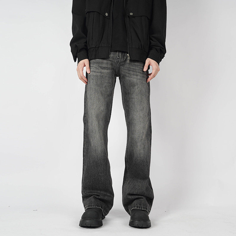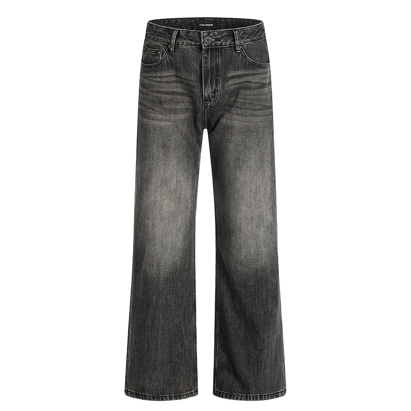 秋冬加绒休闲阔腿长裤 豪霆.复古水洗宽松直筒cleanfit牛仔裤 男士