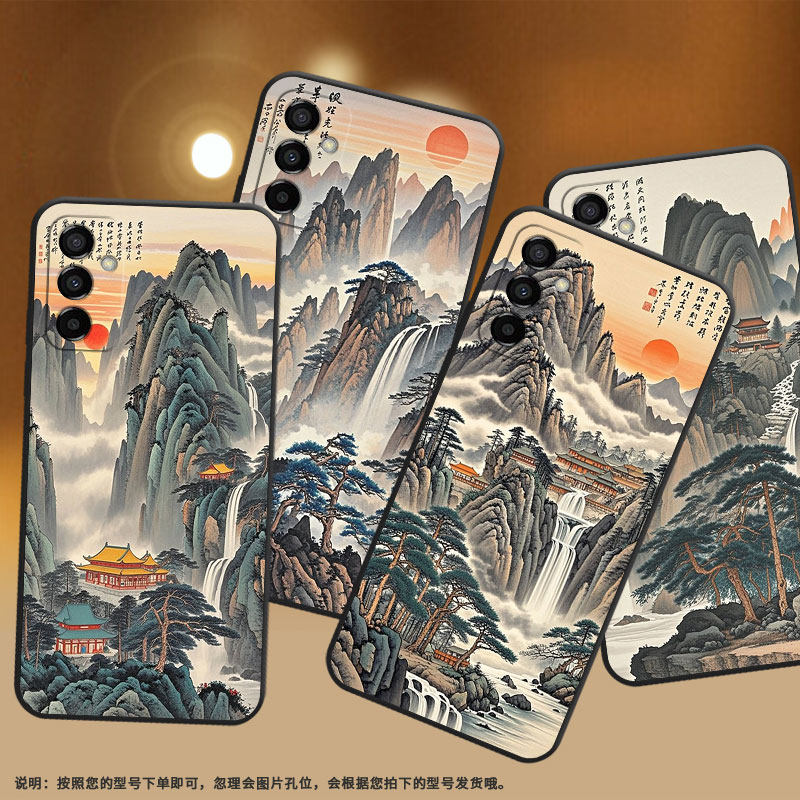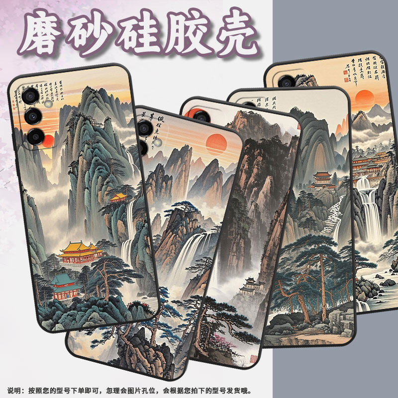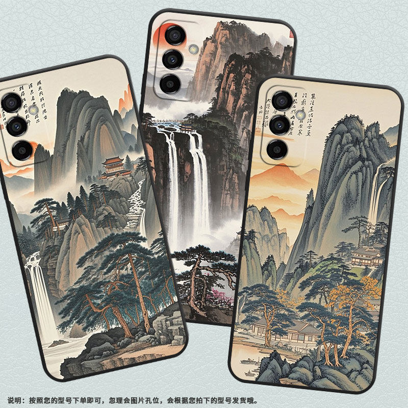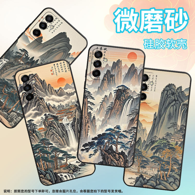 适用三星M10S手机壳M04群山环绕SM M145F黑色M20硅胶M21s保护套 M105F全包samsungM02s磨砂壳M13防摔爆SM