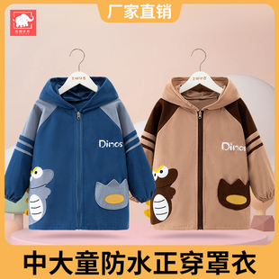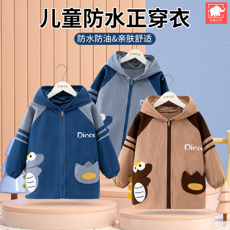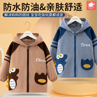 儿童罩衣防水防脏拉链男宝宝羽绒服护衣围裙婴儿正穿秋冬外穿洋气