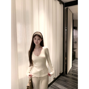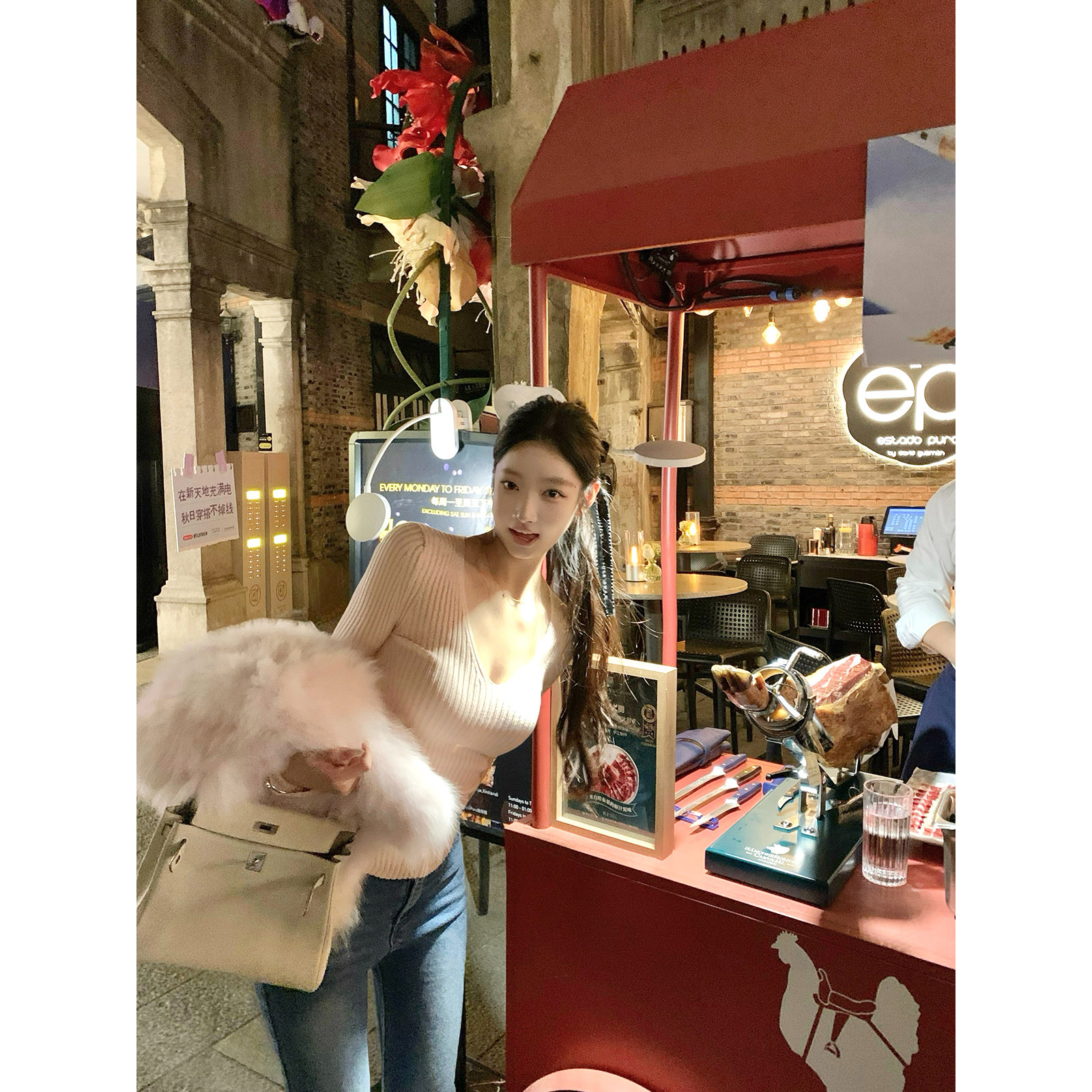 女纯羊绒毛衣针织打底衫 气质美学 100%纯山羊绒开衫 修身 秋冬 法式