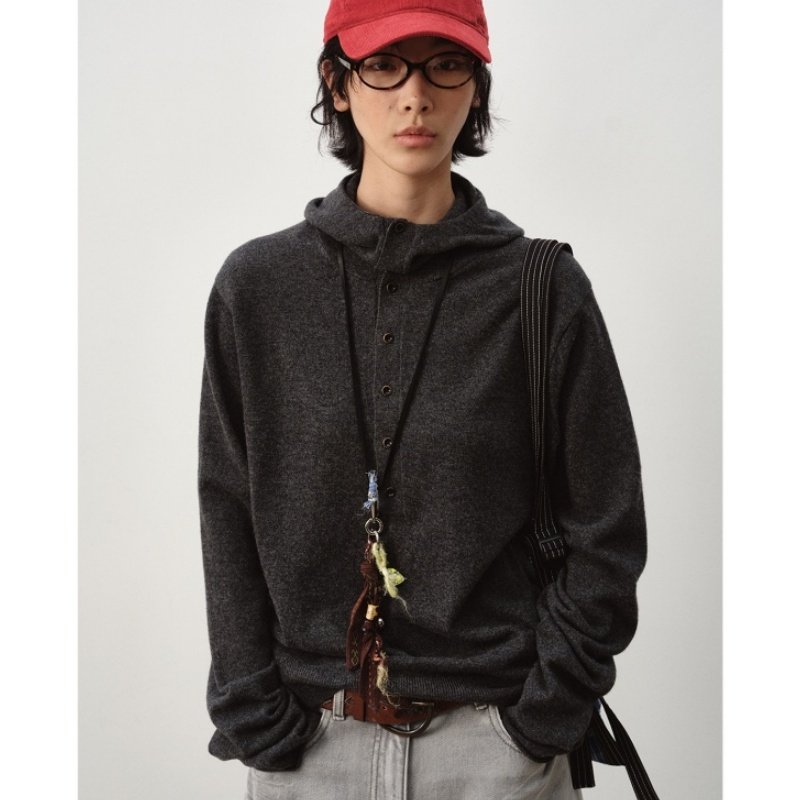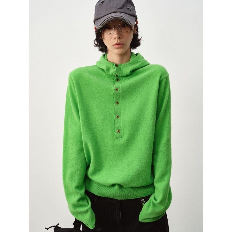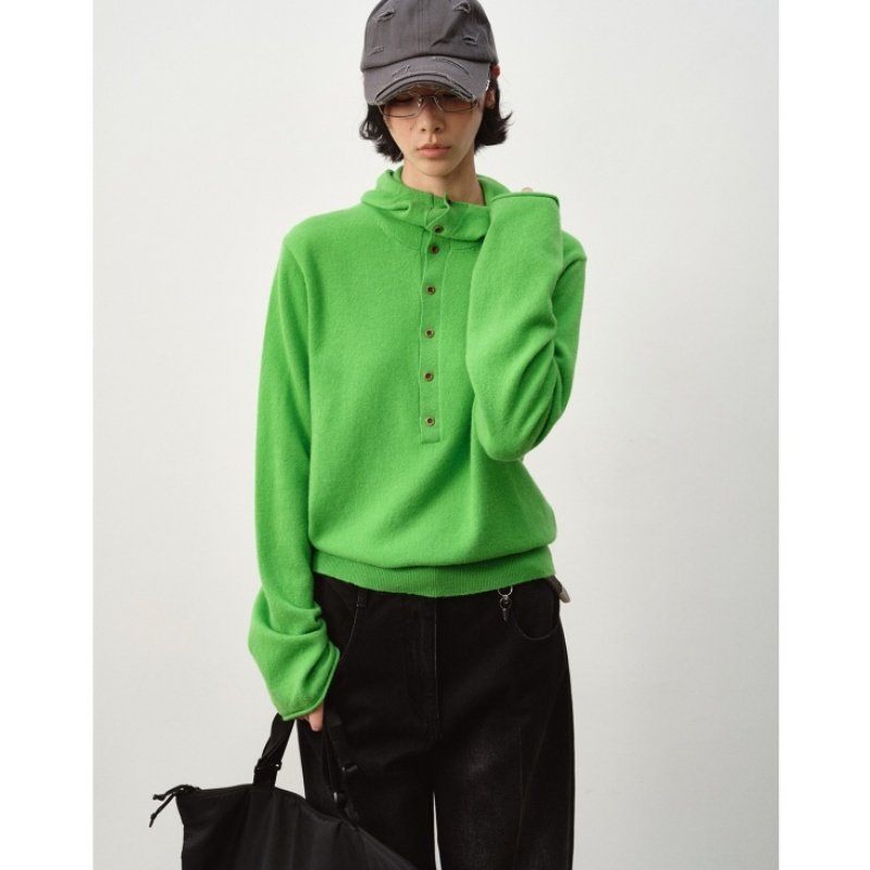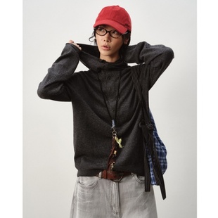 宽松上衣外穿潮 半开领长袖 2025新款 春秋休闲连帽羊毛毛衣女针织衫