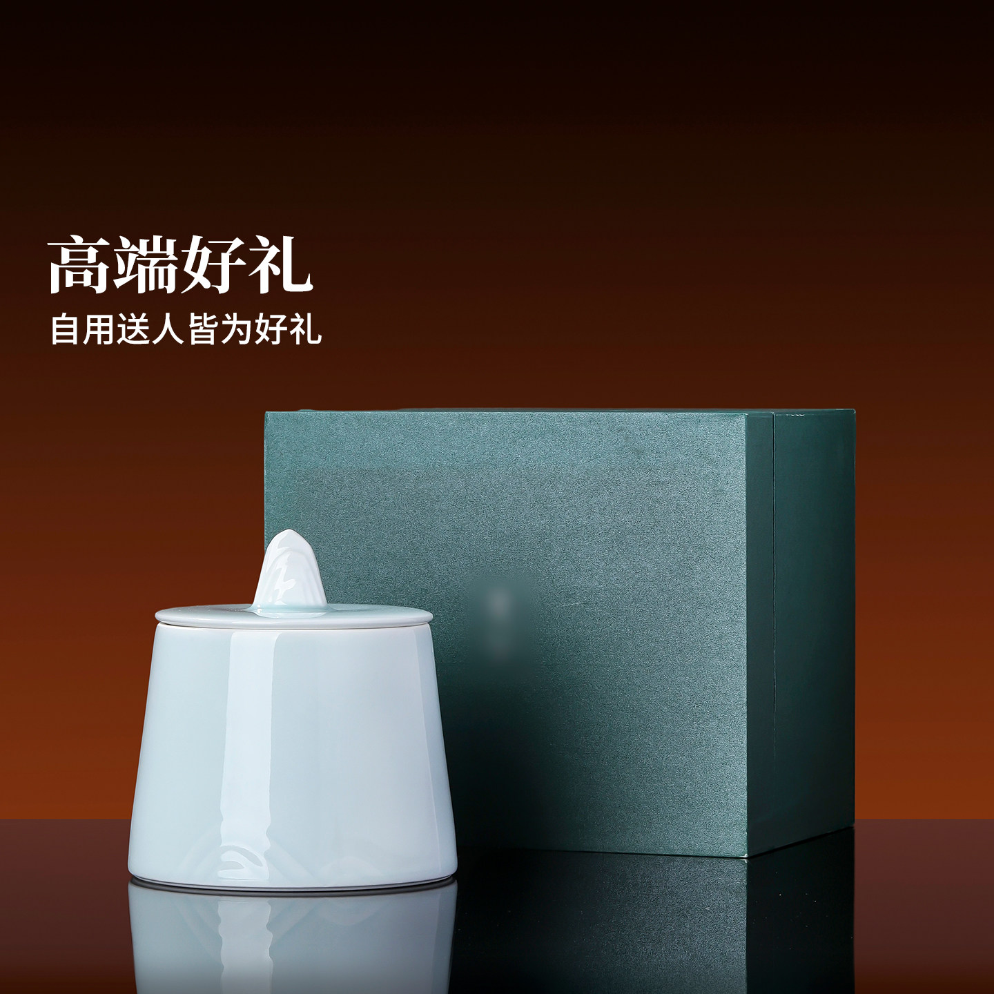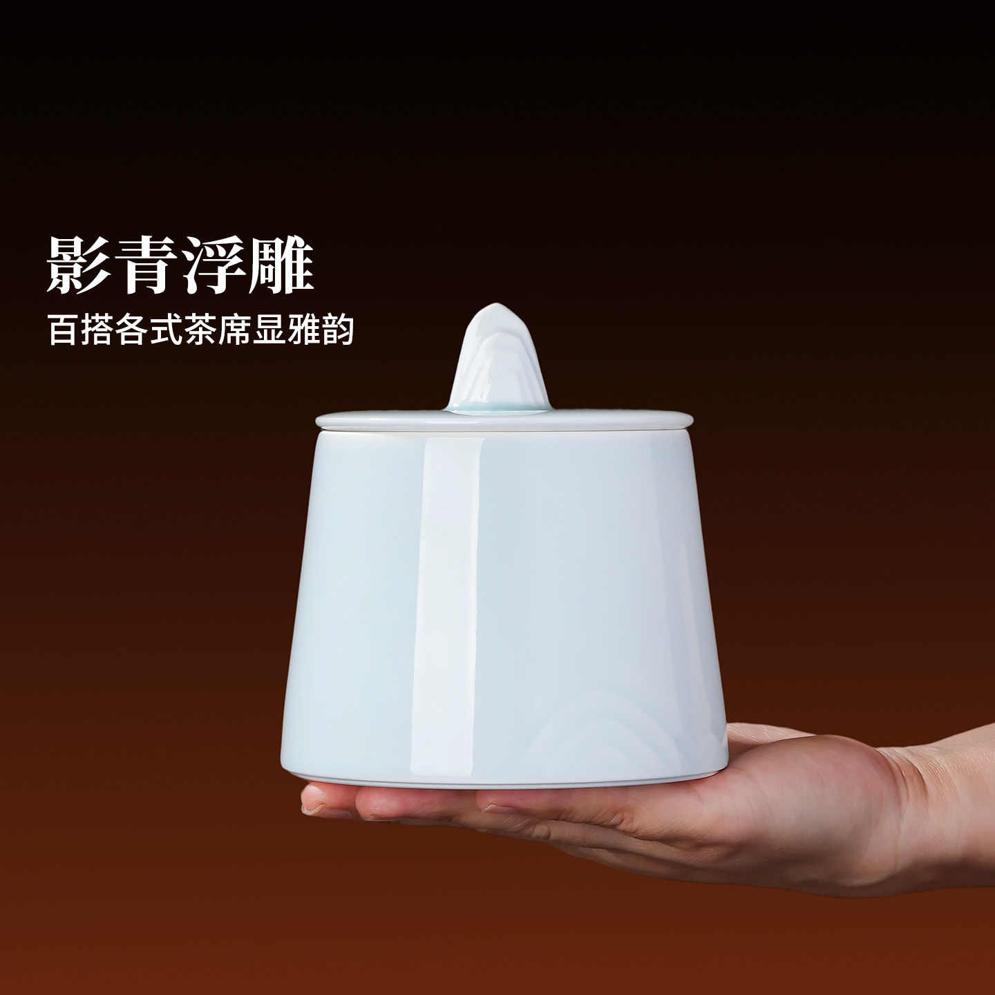 景德镇官方高温陶瓷影青雕刻茶叶罐家用客厅茶道茶具配件茶道零配