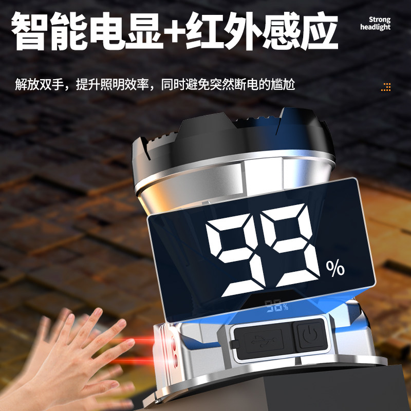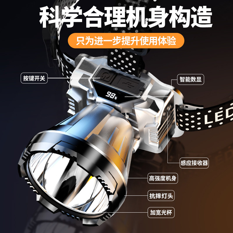 强光感应头灯钓鱼专用超长续航充电头戴式 户外登山夜爬灯野外夜钓