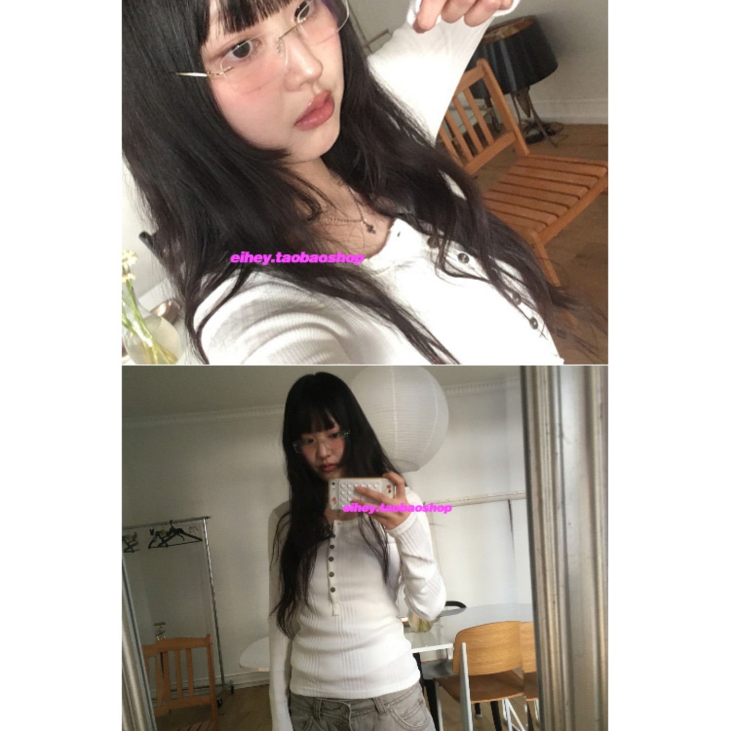 打底衫 复古黑白拼接插肩T恤女春秋长袖 宽松内搭上衣 美式 2025新款