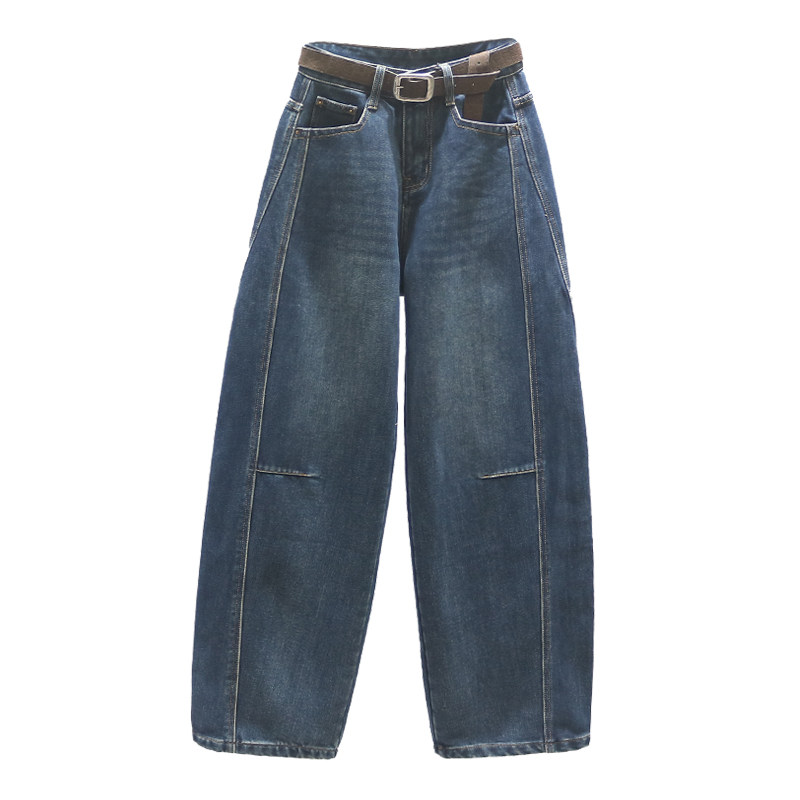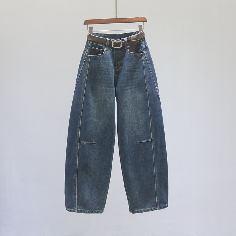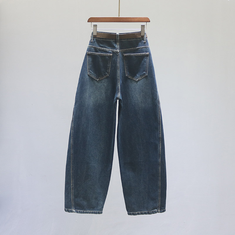 百搭宽松直筒九分裤 女秋冬新款 子 高腰加绒法棍牛仔裤 镇店之宝
