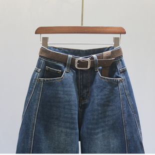 小个子九分裤 女2025秋冬新款 子 阔腿直筒牛仔裤 欧货加厚冷茶色窄版