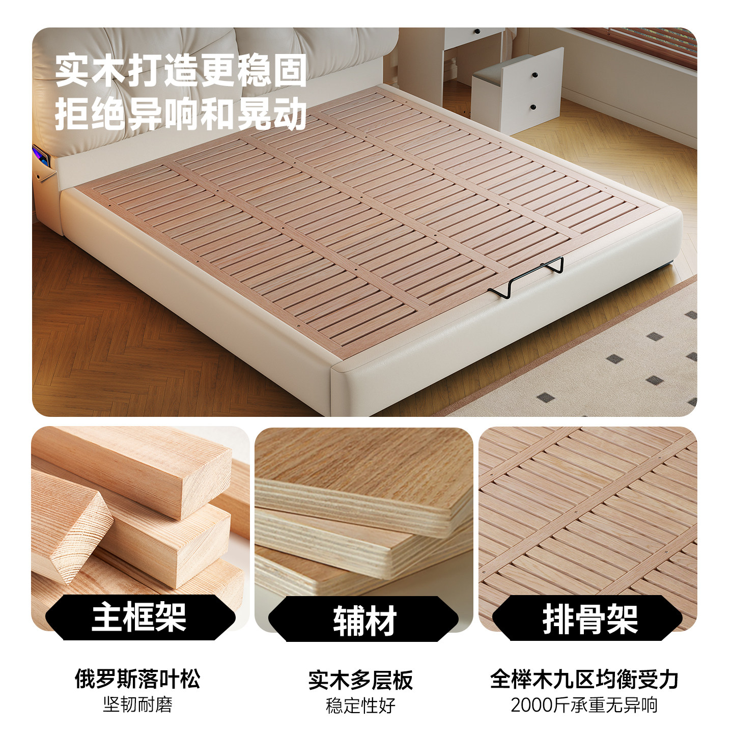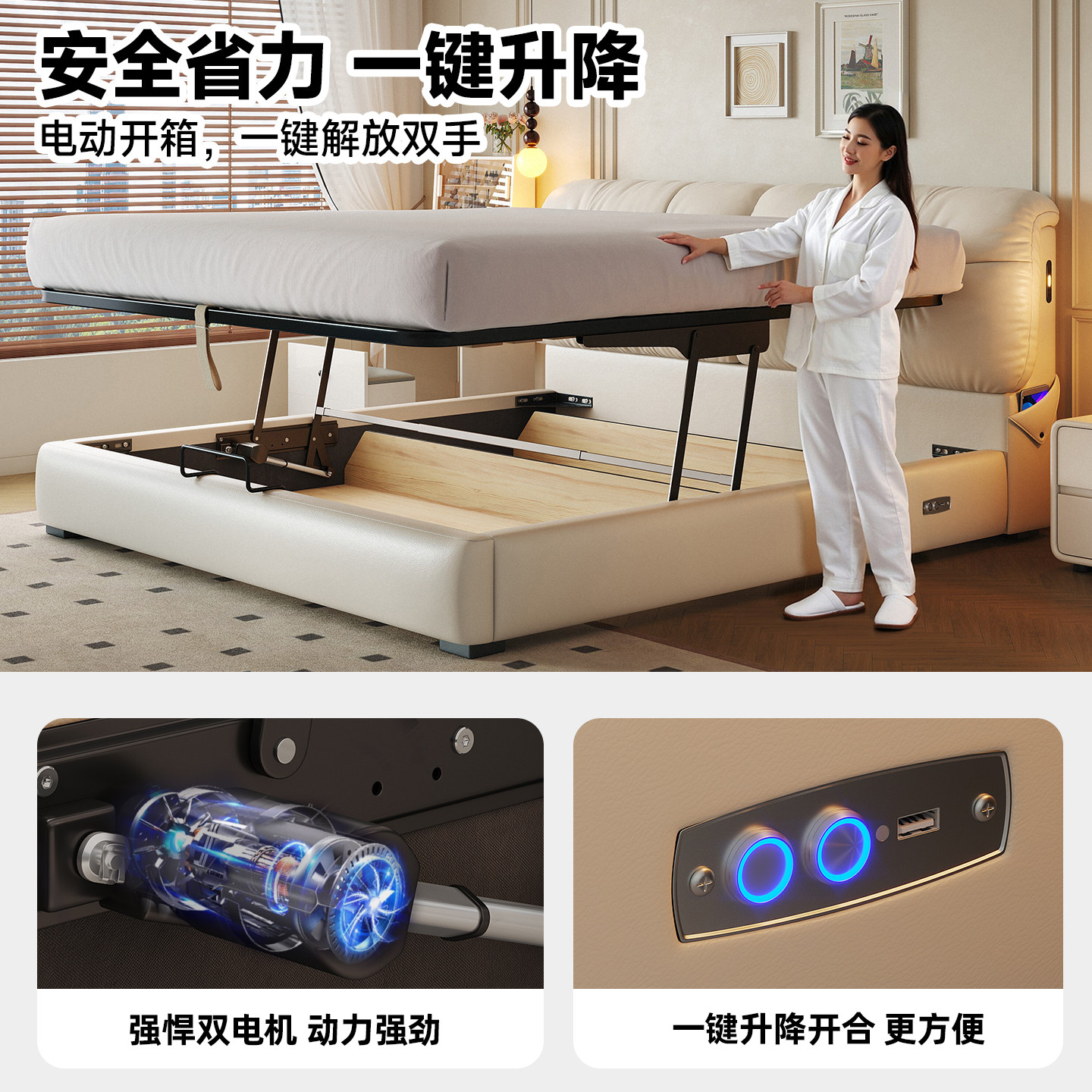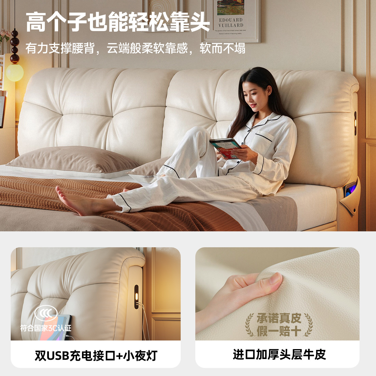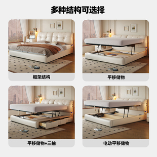 帕沙曼法式 复古真皮床主卧大床奶油风羽绒软包婚床电动平移储物床