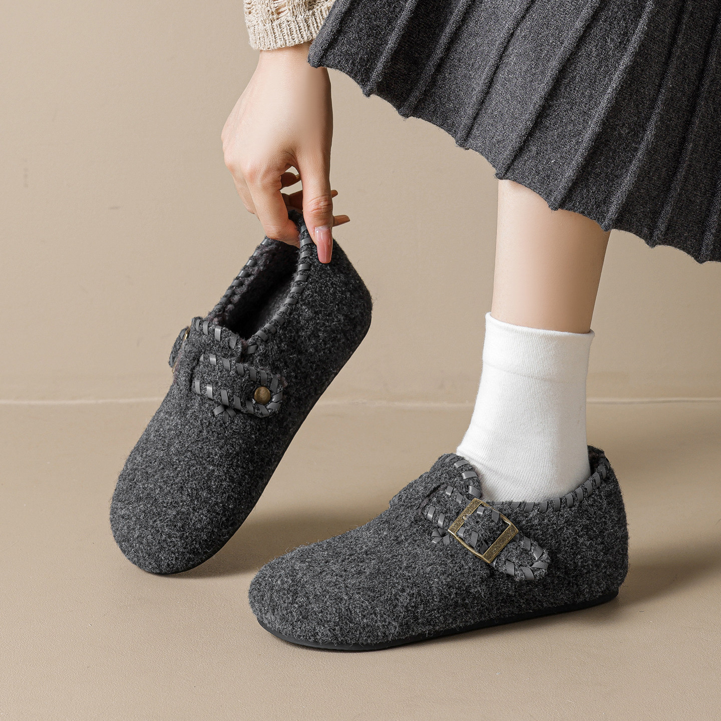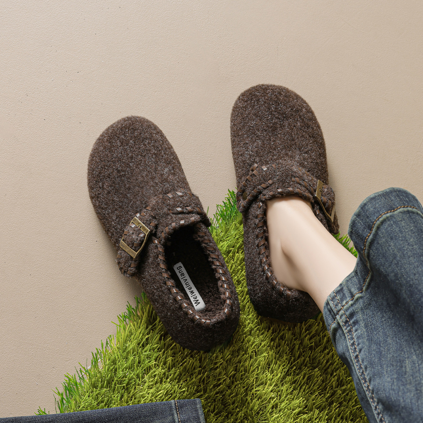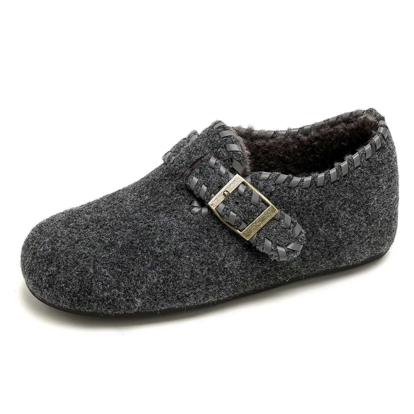 灰色厚底勃肯鞋 女鞋 女加绒内增高一脚蹬毛毛鞋 大码 博肯棉鞋 米霏