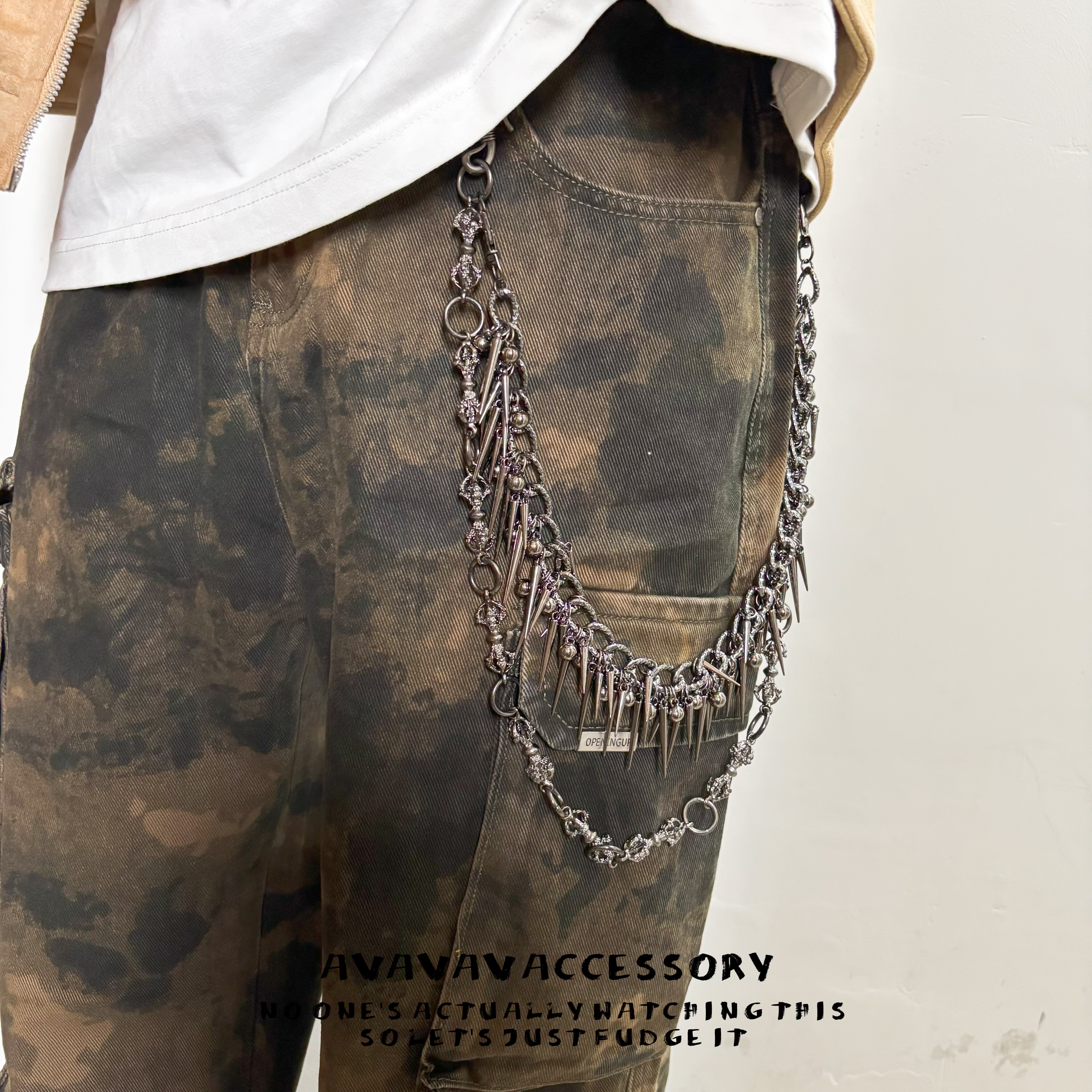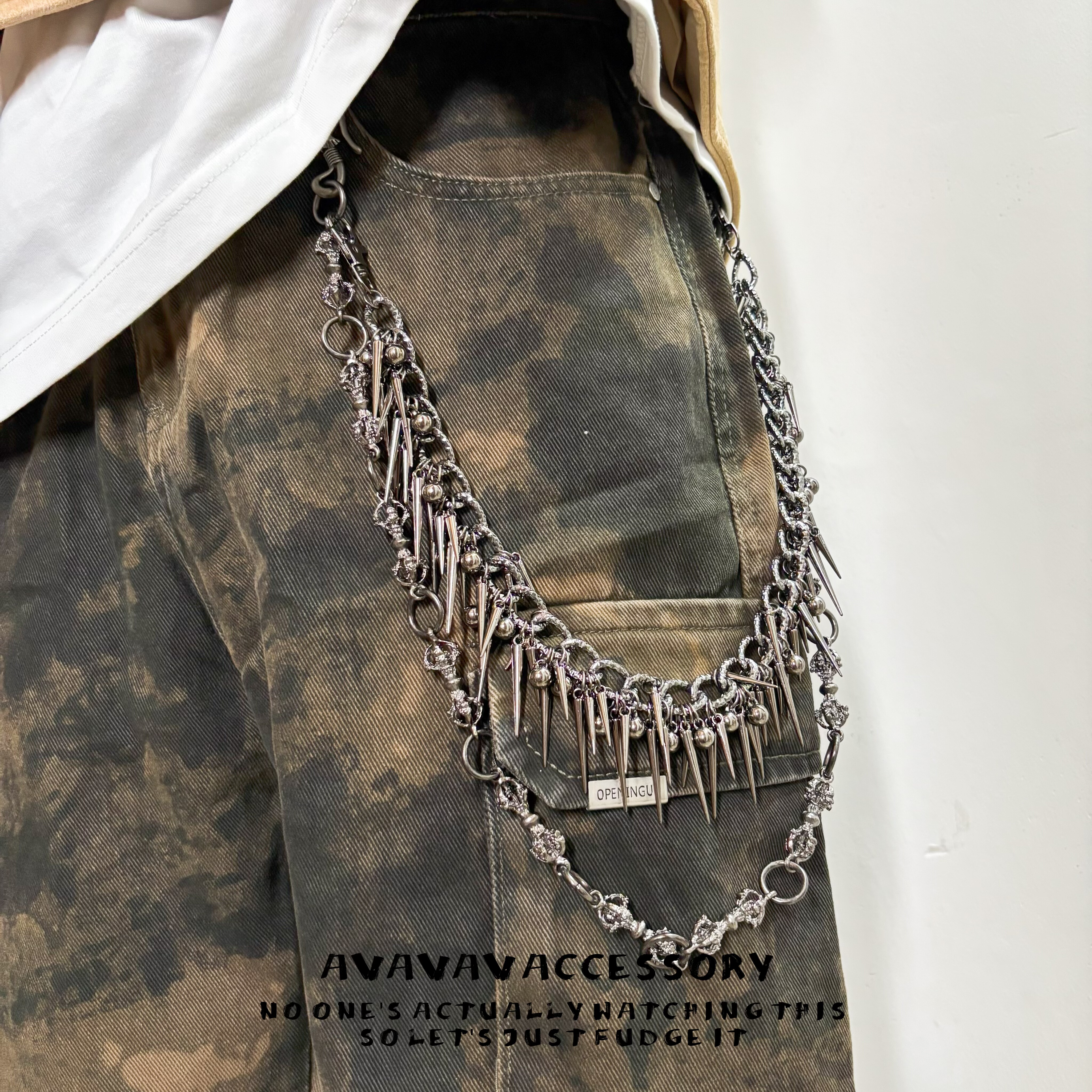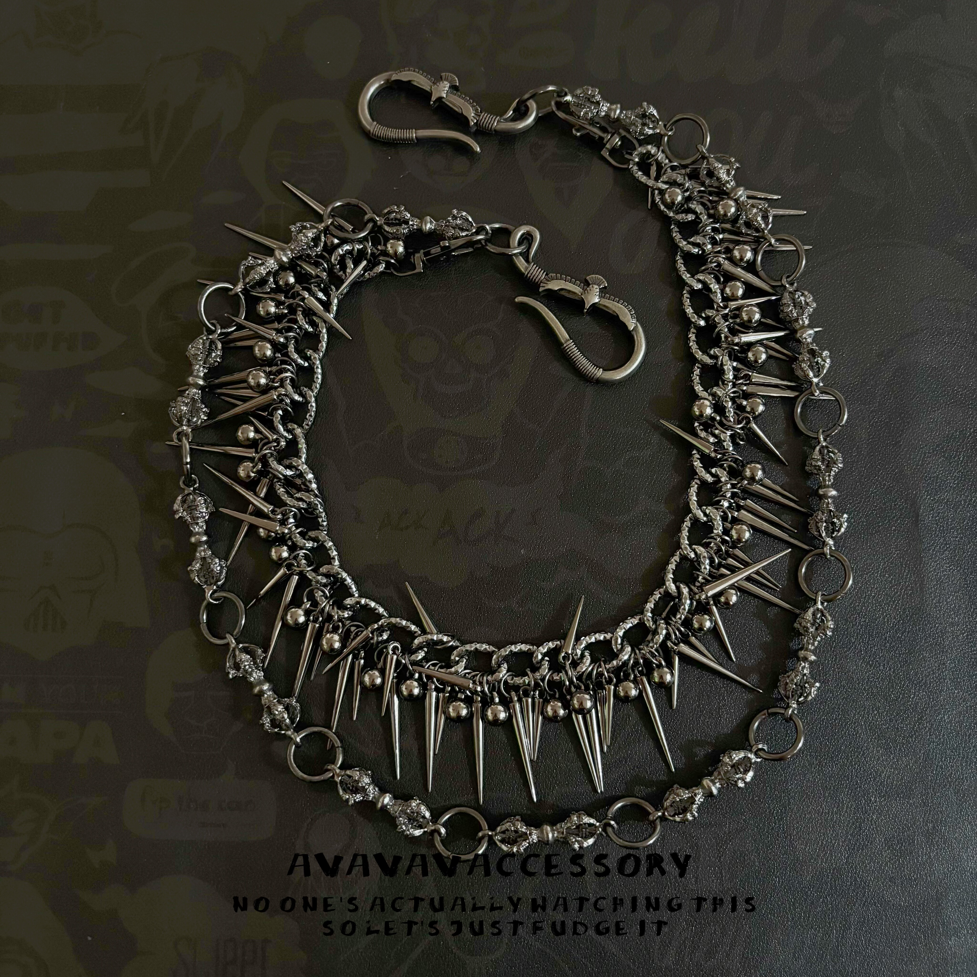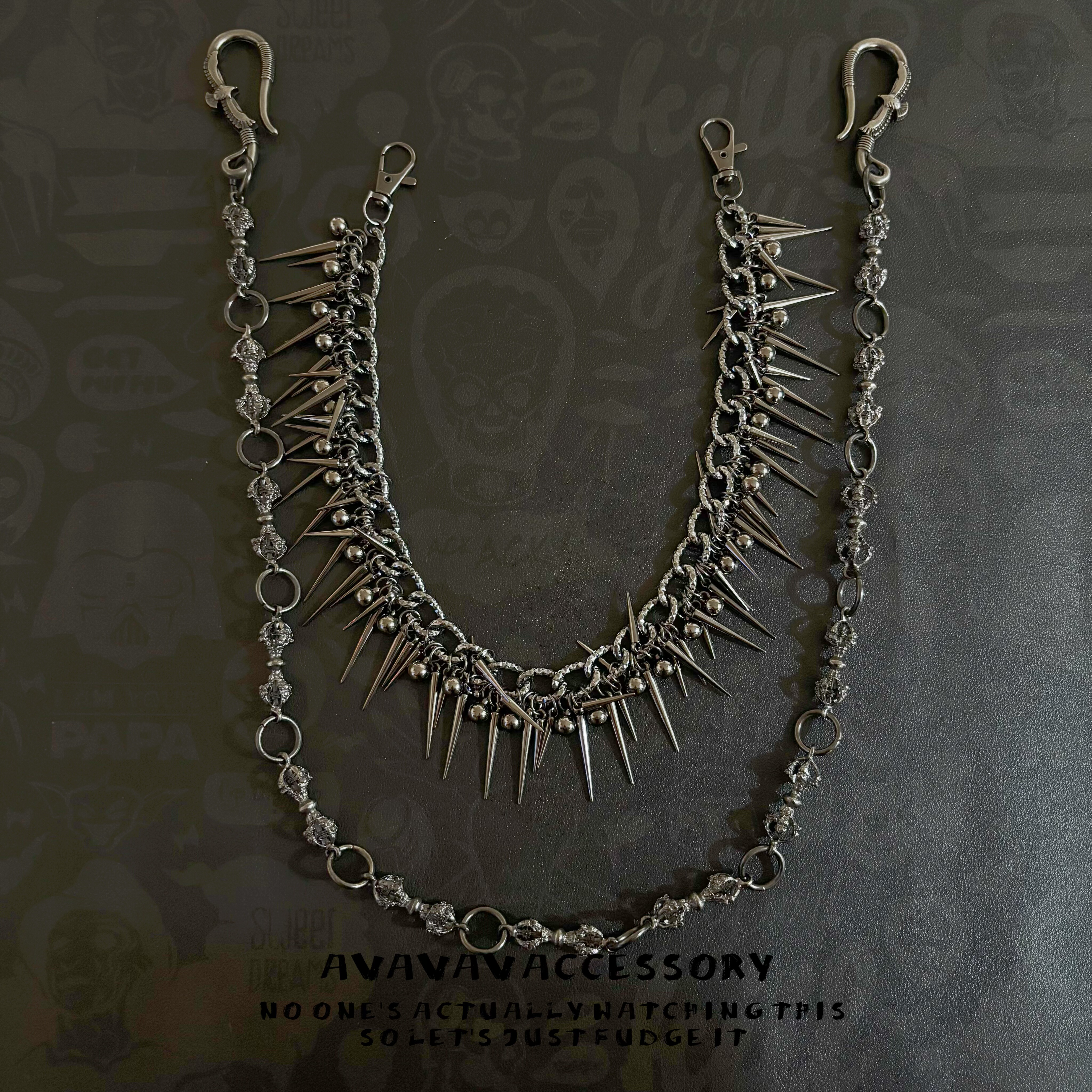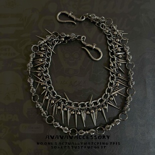 AVAVAV 链暗黑朋克嘻哈可拆卸夸张腰链包链 原创金刚杵尖钉双层裤