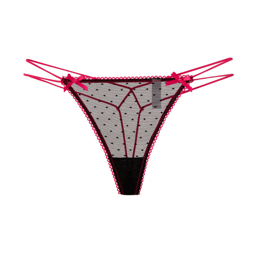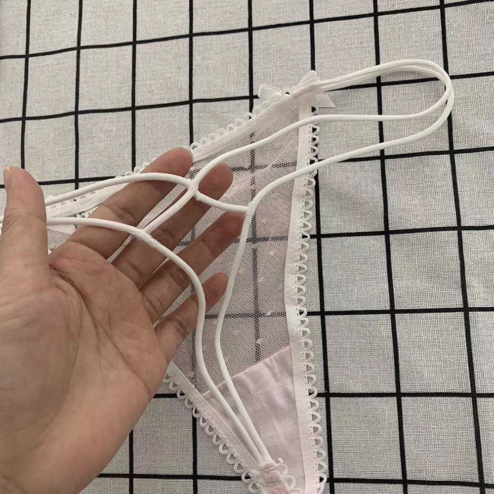性感甜美透明细带蝴蝶结女生低腰内裤 新款 超薄少女波点网纱丁字裤