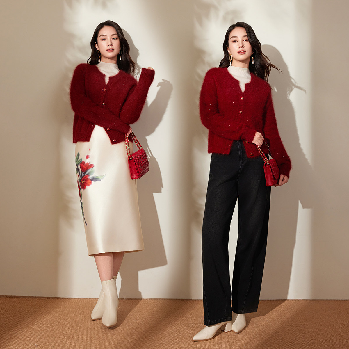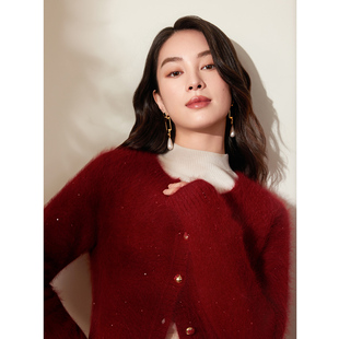 慵懒感 兔毛拉绒毛衫 BBLLUUEE 新款 女外套 粉蓝衣橱2025秋冬装