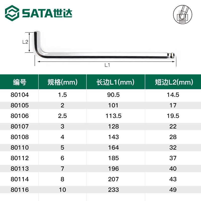 10mm 2.5 世达内六角扳手单个球头平头L型工具1.5