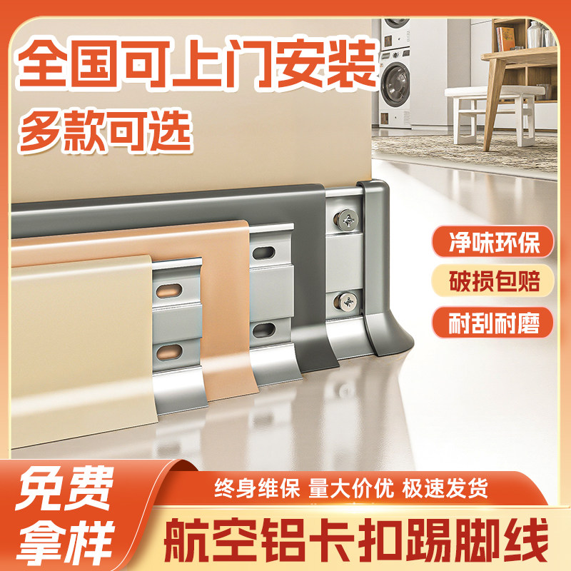 铝合金踢脚线卡扣式 全铝贴脚线条6cm8cm不锈钢超薄极简金属地脚线