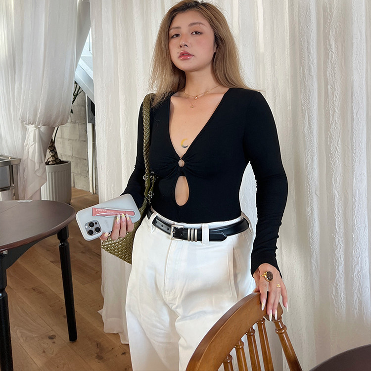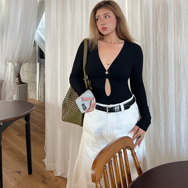 显瘦设计感上衣T恤 T恤2025修身 LTGIRL大码 纯欲性感风黑色镂空长袖