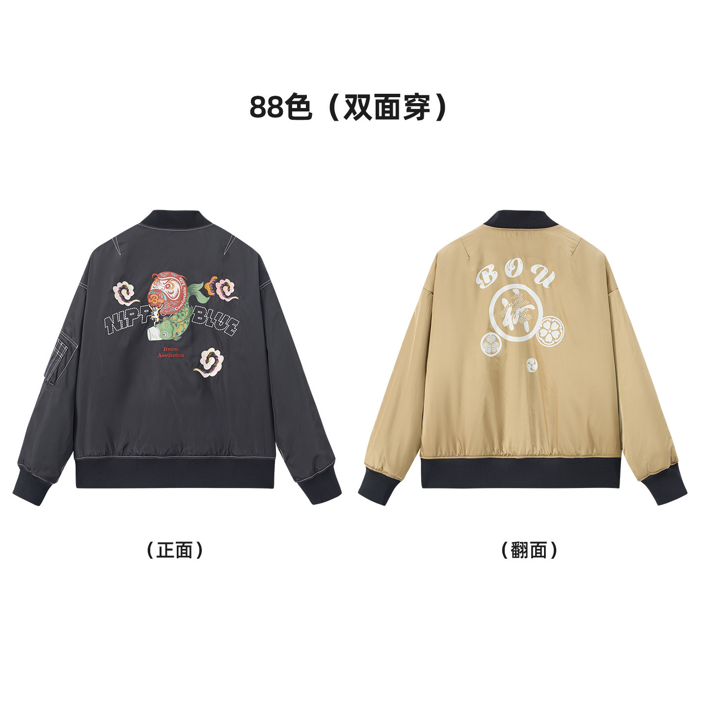 ONIARAI N340226 鬼洗25秋冬棒达摩鲤鱼旗双面穿廓形空军棉服男式