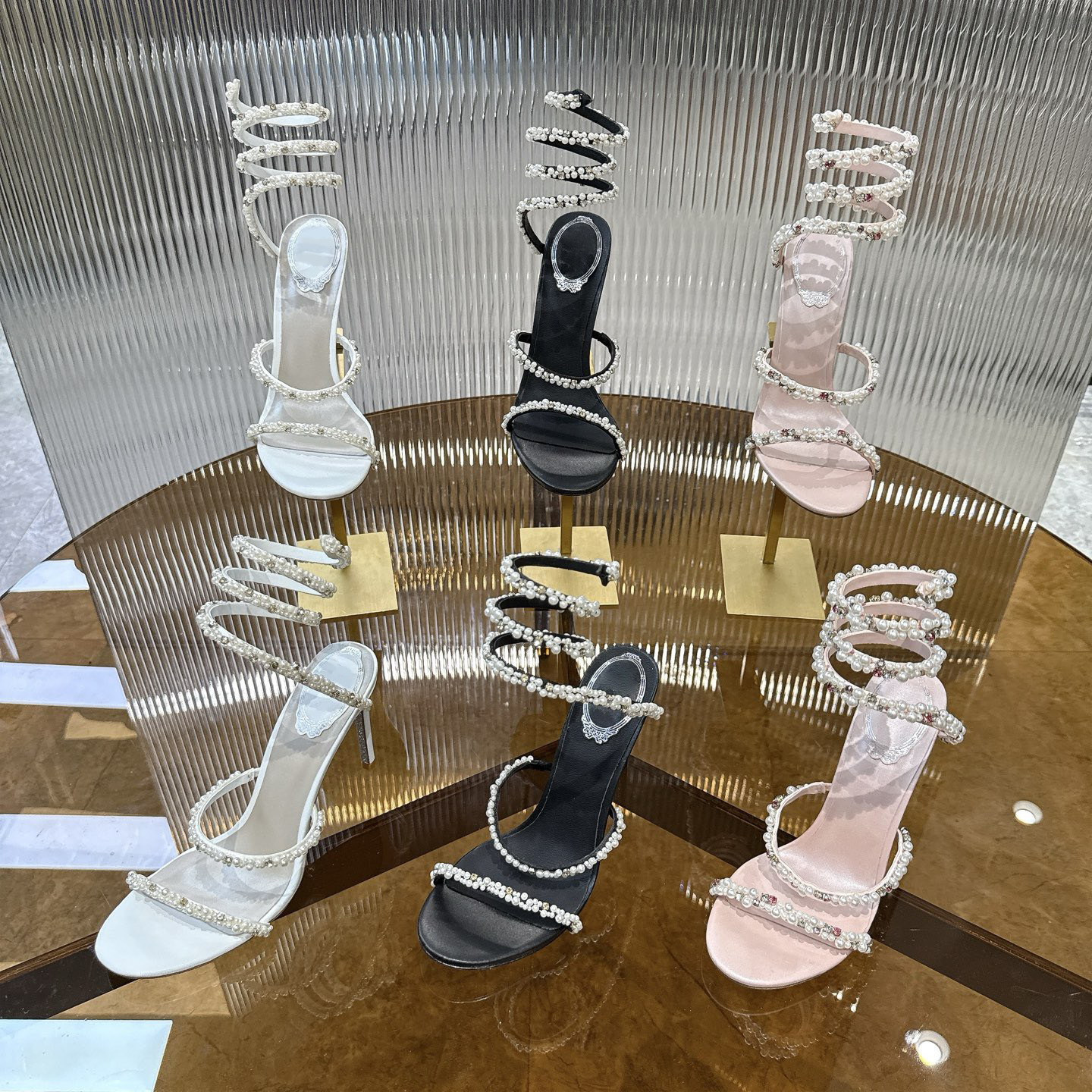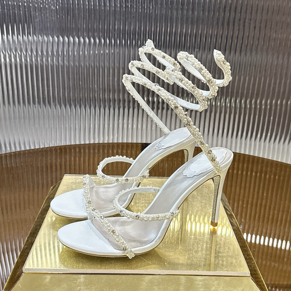宴会女鞋 法式 高级感露趾细跟仙女风婚鞋 新款 珍珠水钻缠绕高跟凉鞋
