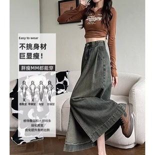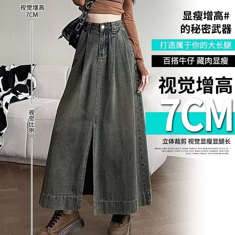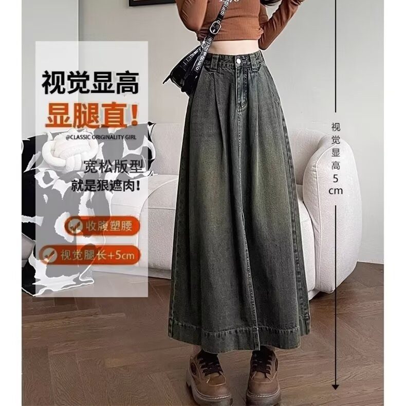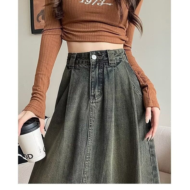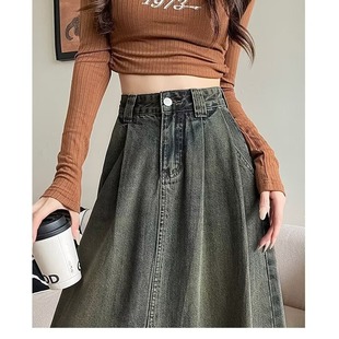 几何单元 裙子 蓝色牛仔半裙秋冬A字半身裙女宽松高腰显瘦中长款