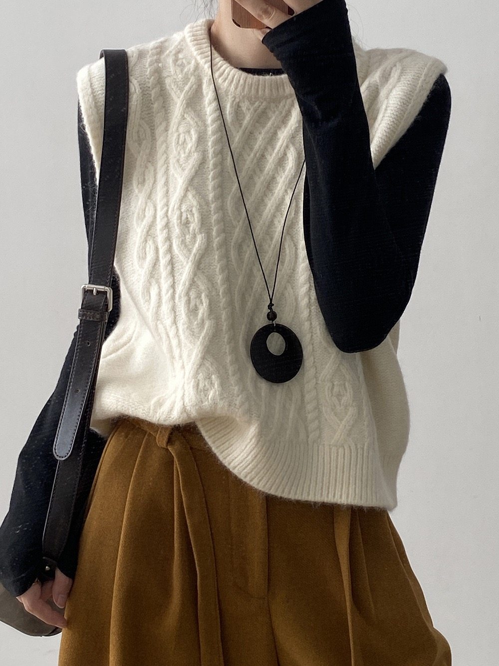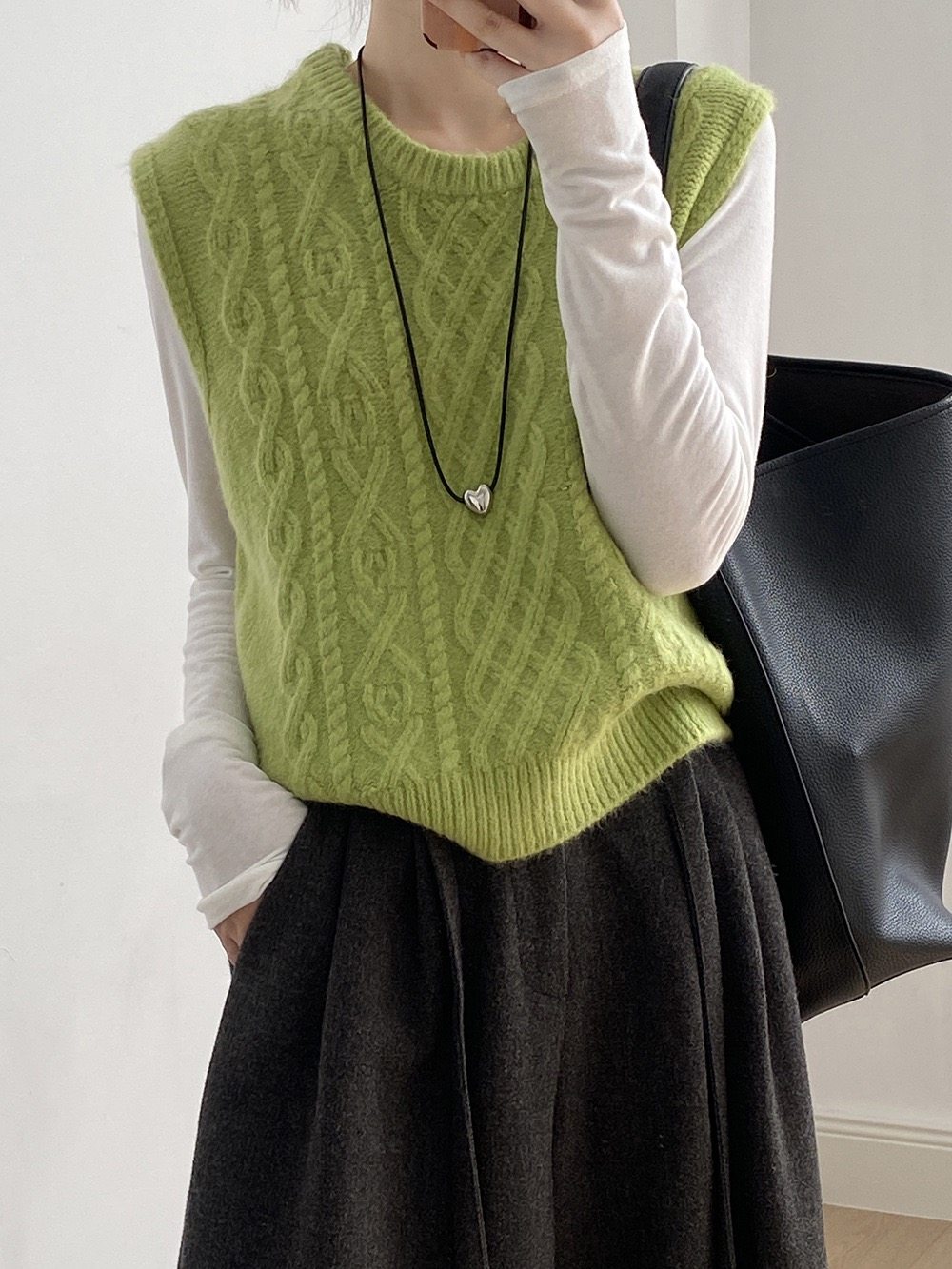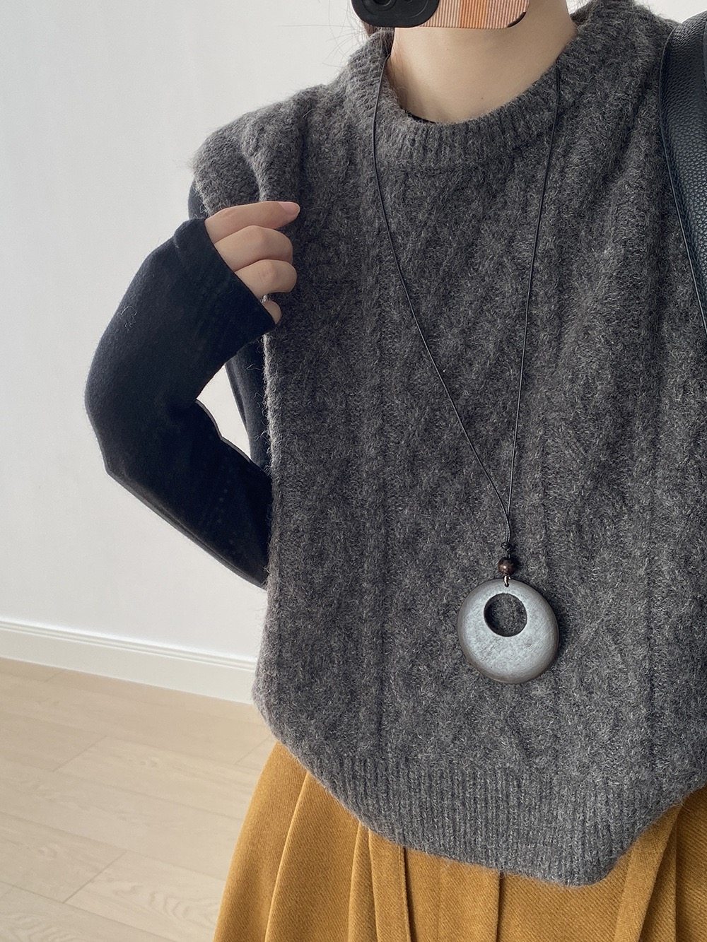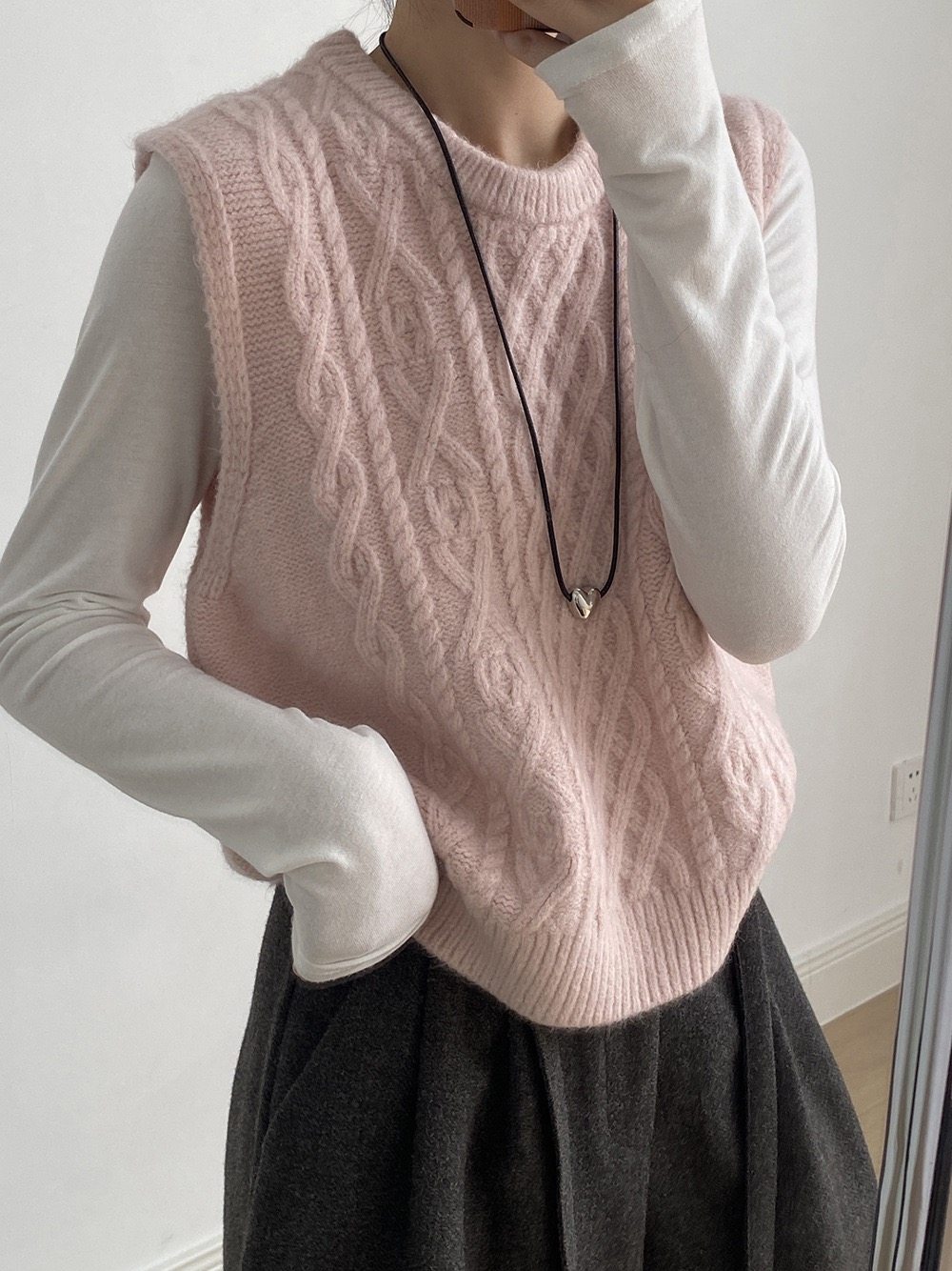 外搭毛衣马甲P2617 秋冬无袖 言双 糖果色圆领麻花软糯针织背心女