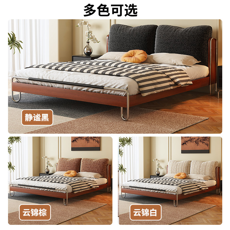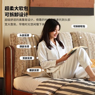 中古风实木床布艺1米8卧室政府补贴双人床1.5米 法式 座家 2026新款