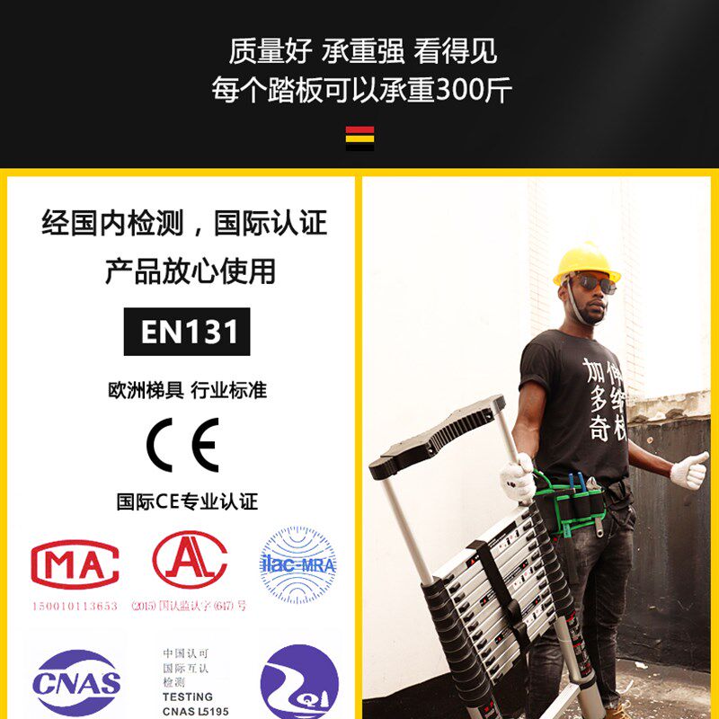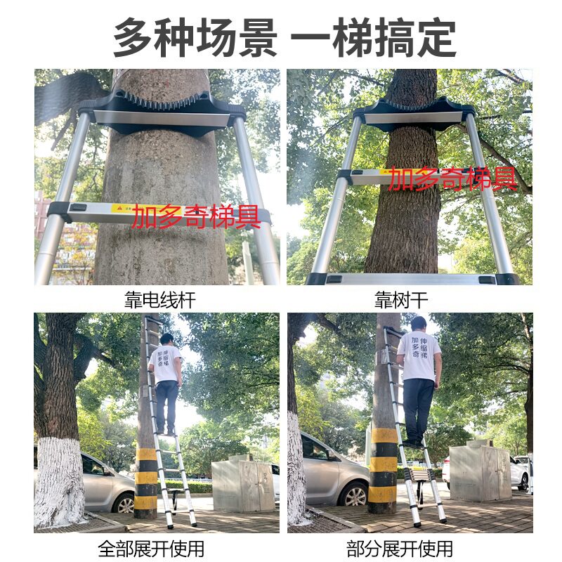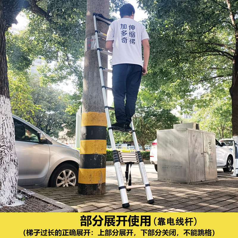 加多奇带电线杆圆形垫圈单面伸缩梯直梯折叠升降梯子便携式 竹节梯