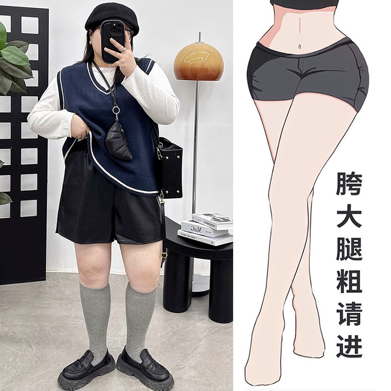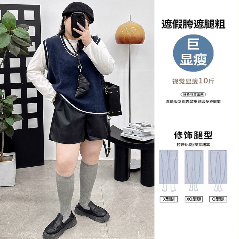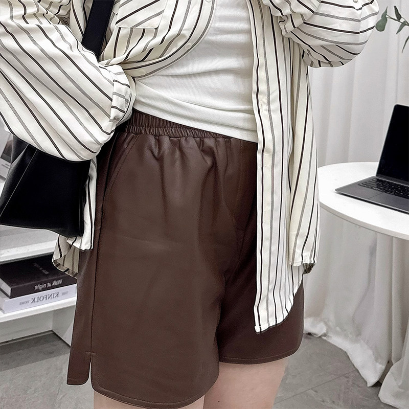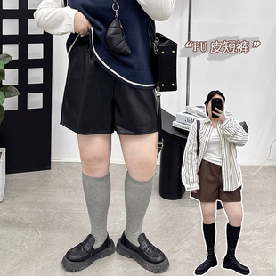 高腰显瘦阔腿a字外穿打底靴裤 女秋冬百搭大码 休闲短裤 咖色PU皮裤