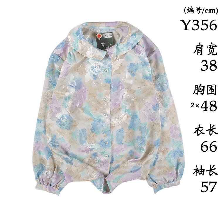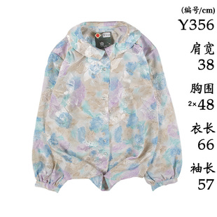 设计感不对称花色拼接飞边盘扣打底衫 新款 女2024冬季 国风丝绒衬衫