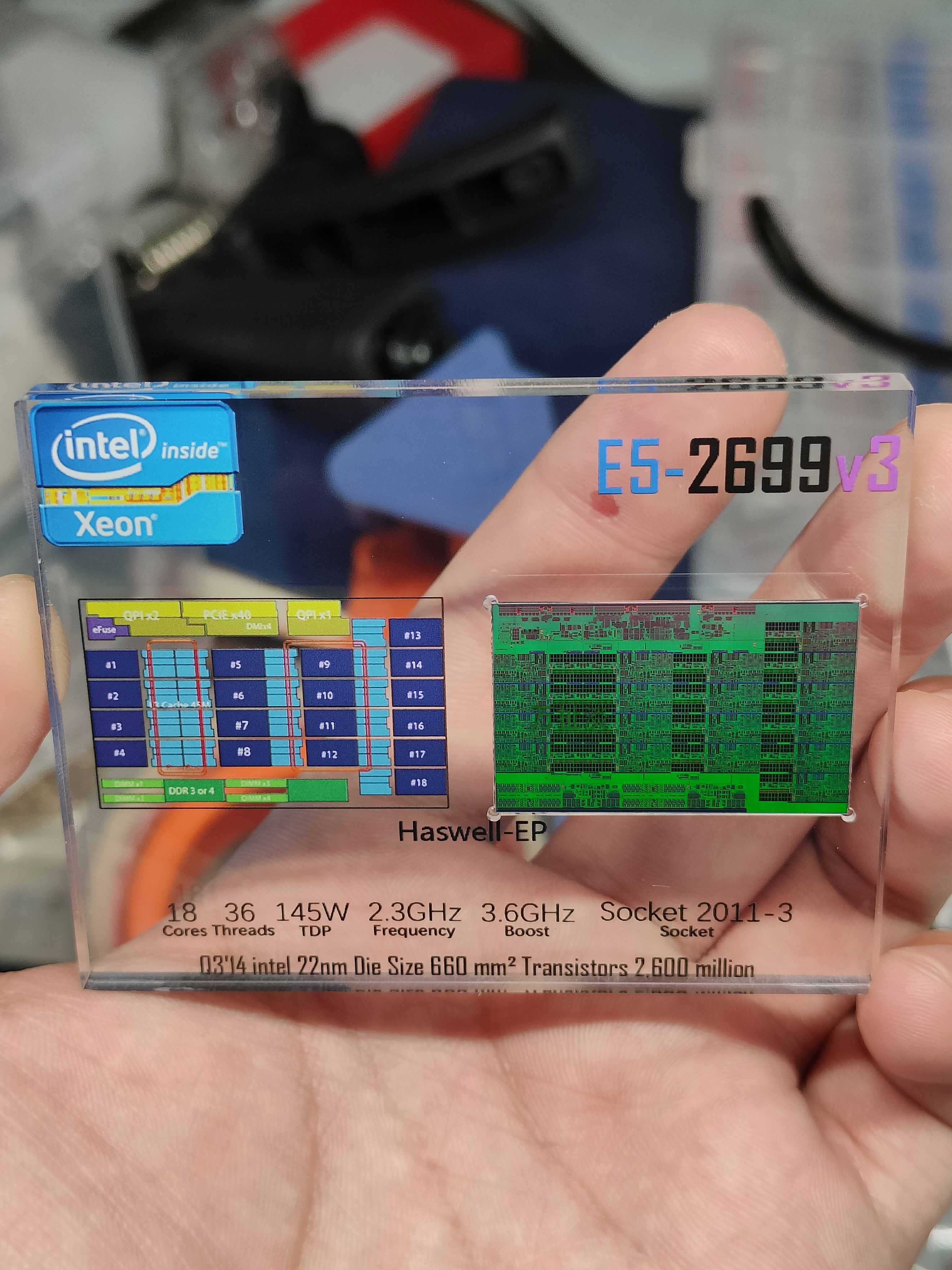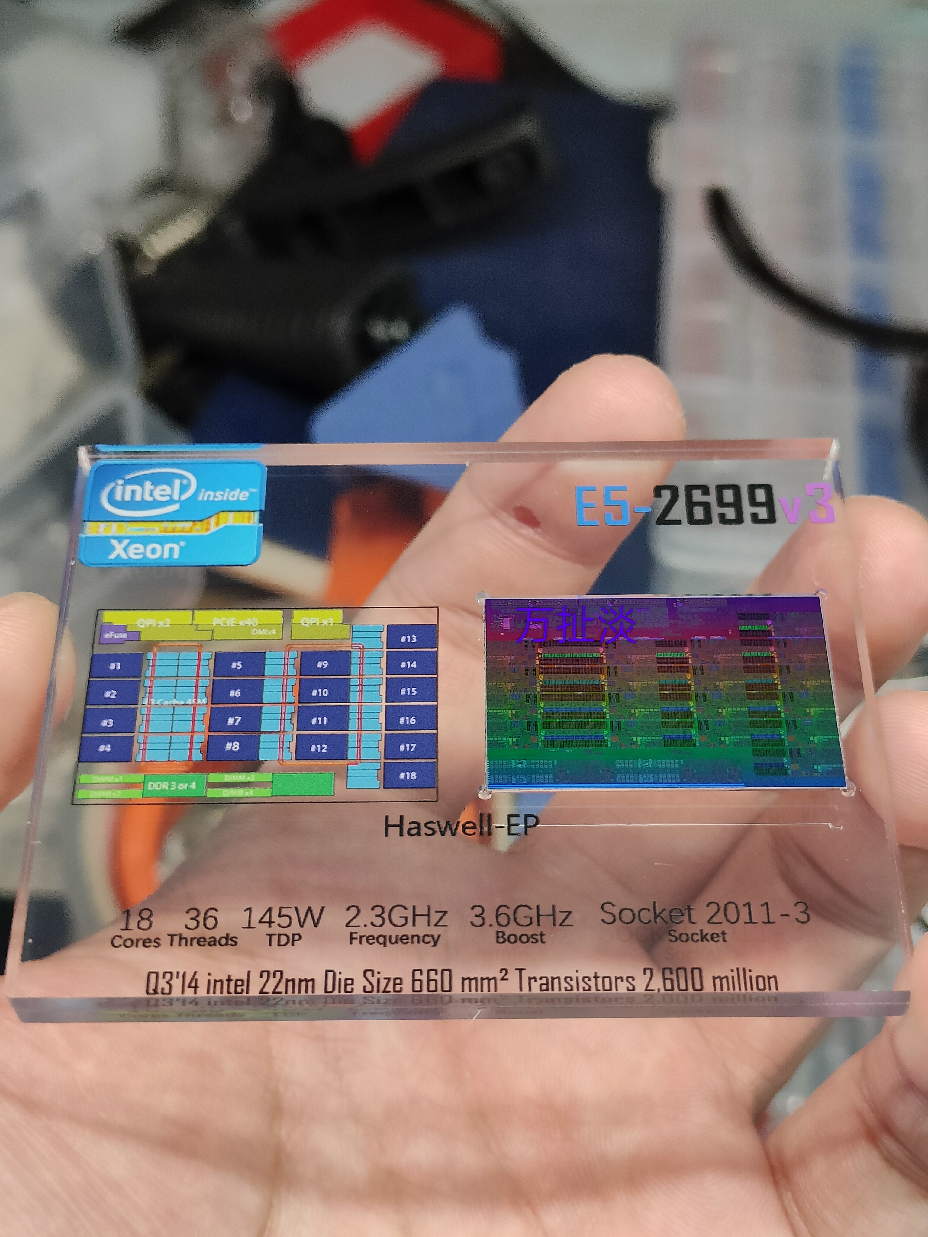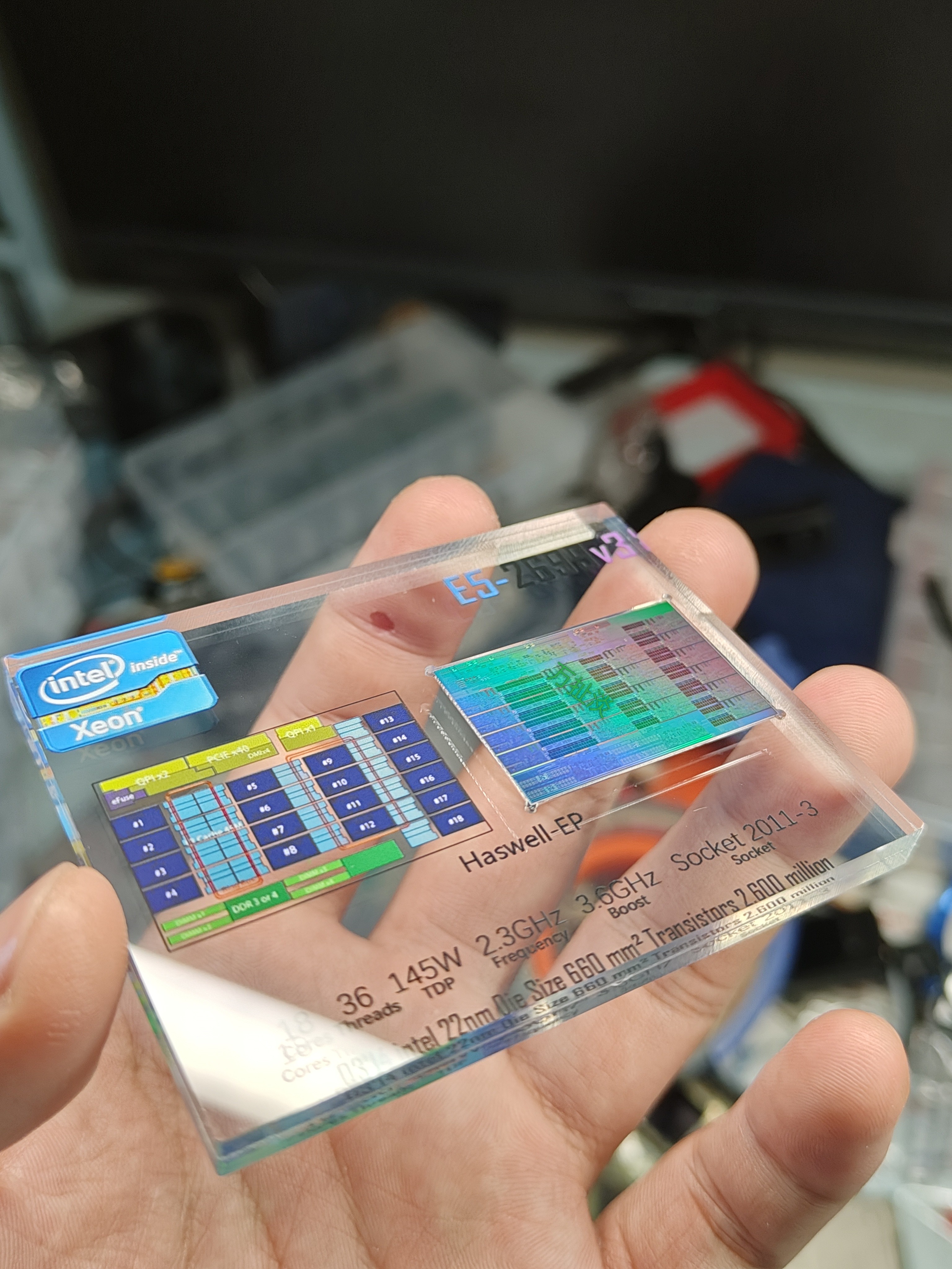 芯片半导体滴胶亚克力 CPU晶圆核心摆件 Intel至强E5 2699v3