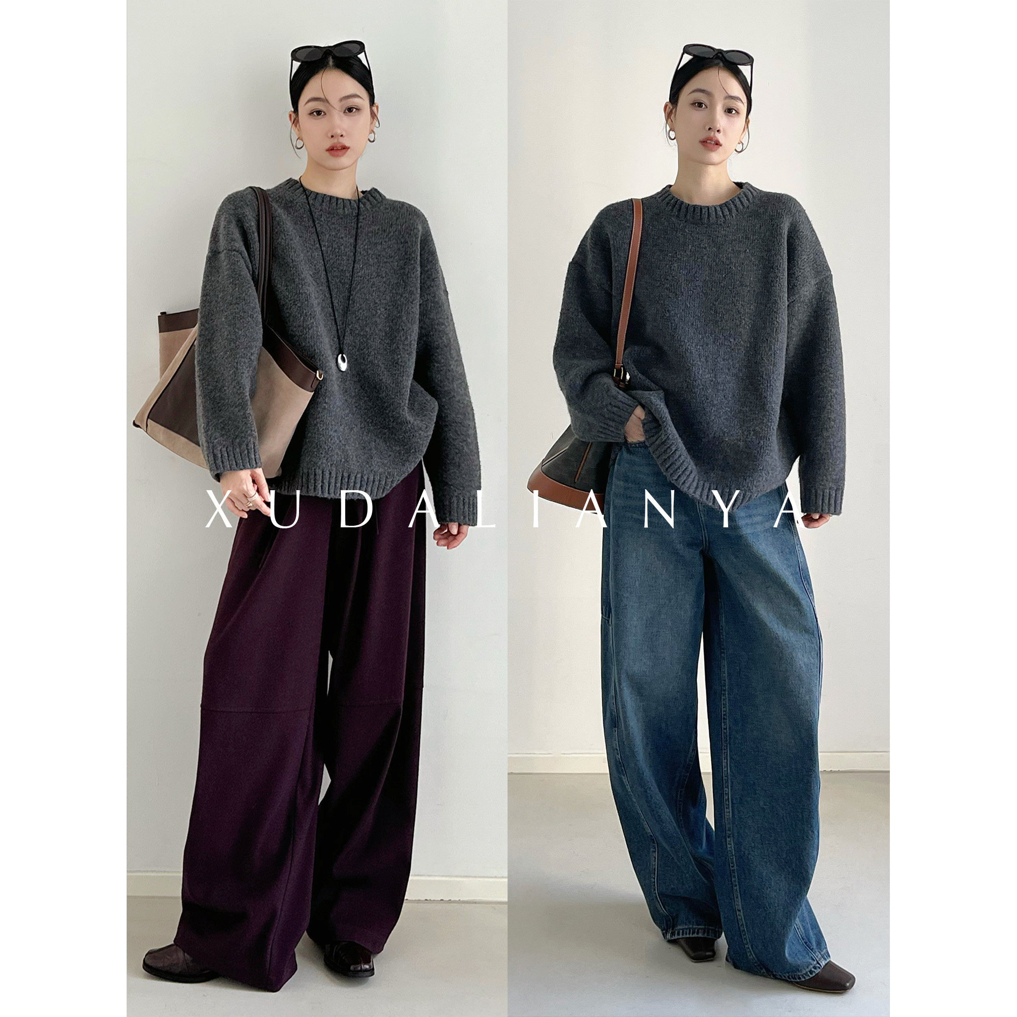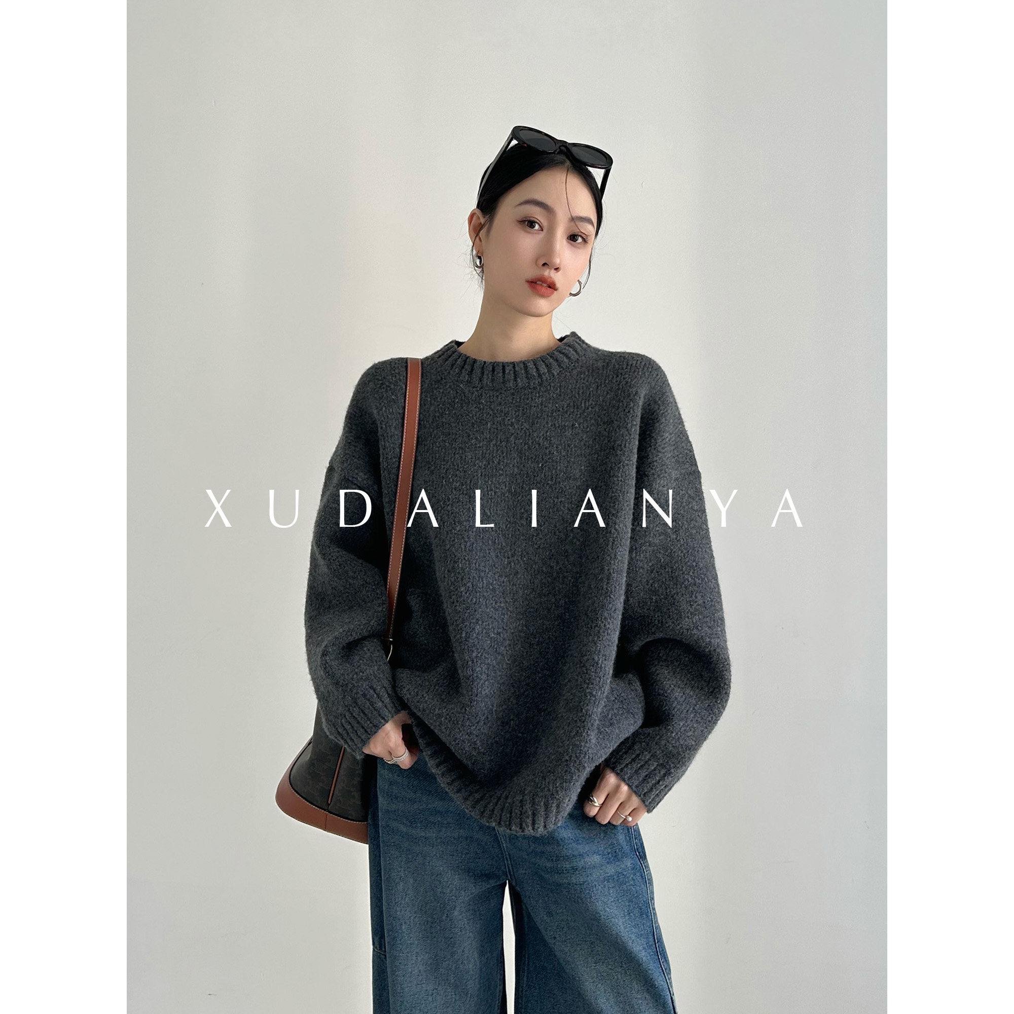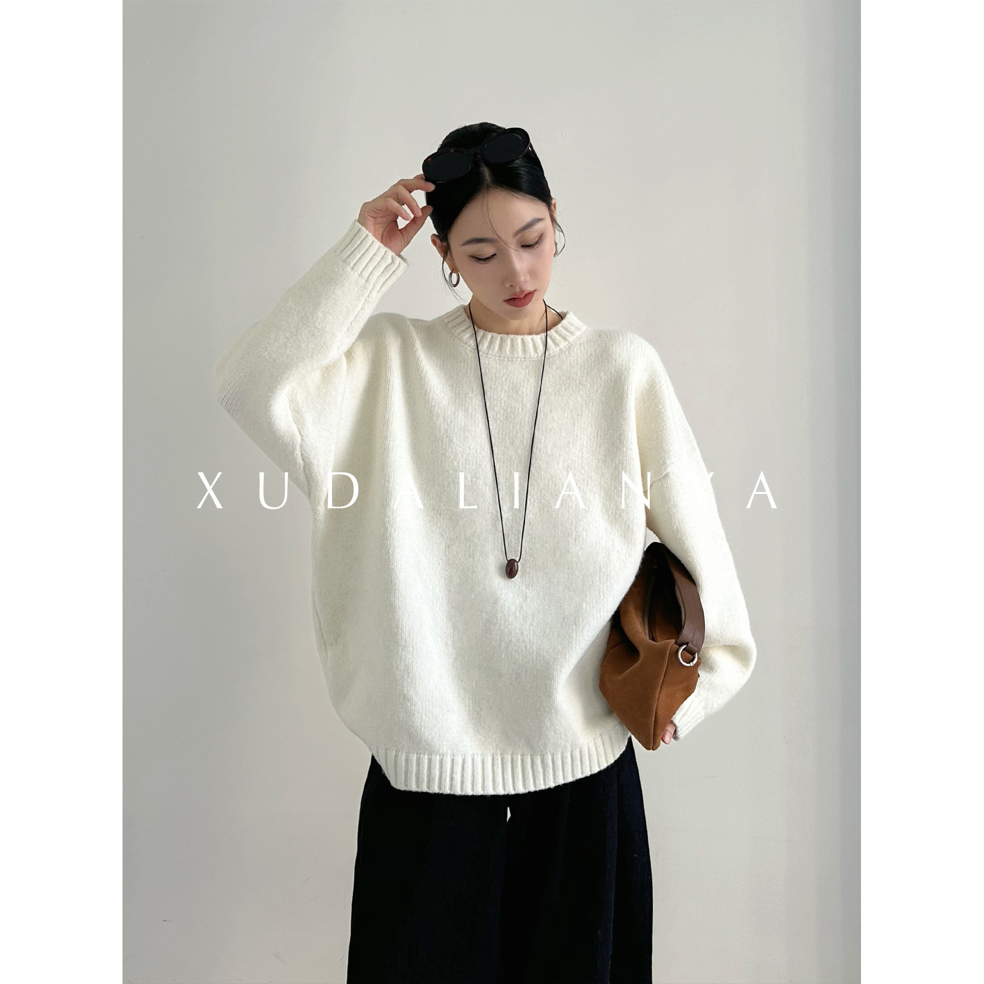 高级感上衣宽松打底针织衫 圆领100%纯山羊绒衫 女高端毛衣秋冬新款
