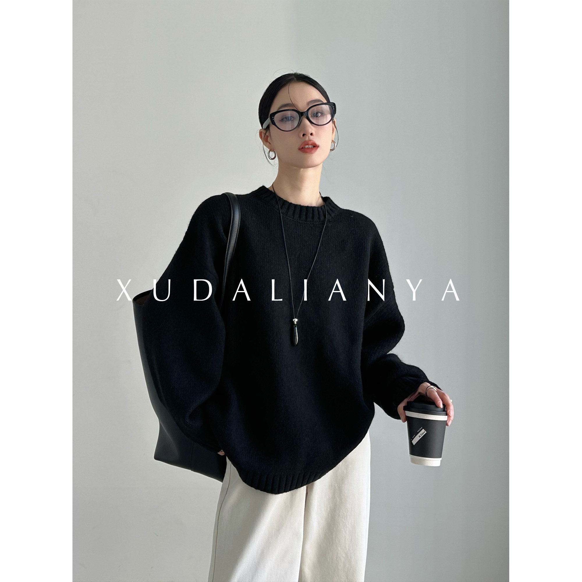 针织打底衫 品牌高级感羊毛衫 女半高领宽松毛衣秋冬加厚羊绒长袖