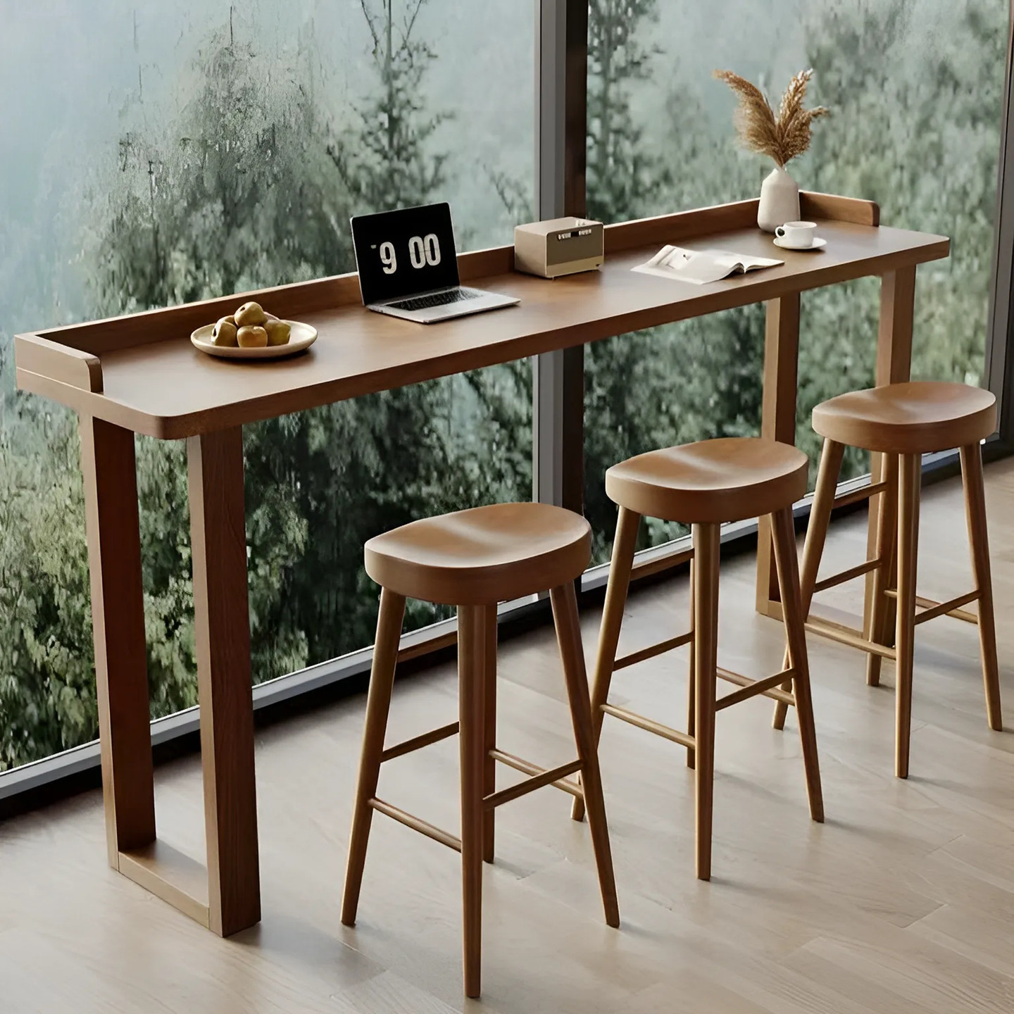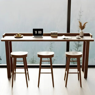实木长条桌酒吧咖啡桌椅组合家用桌子窗边靠墙铁艺阳台高脚吧台桌