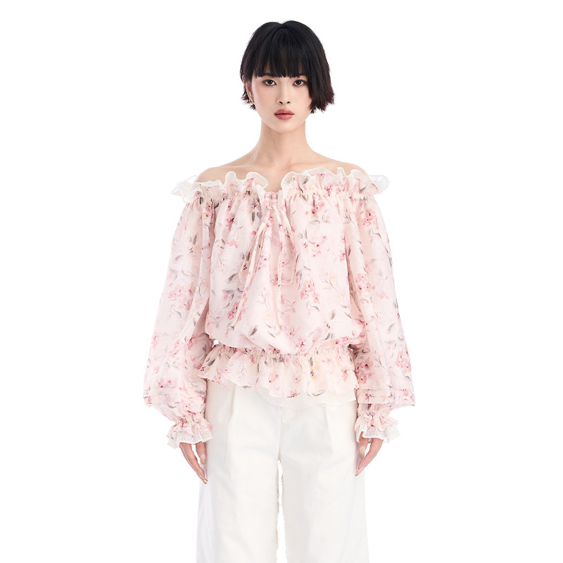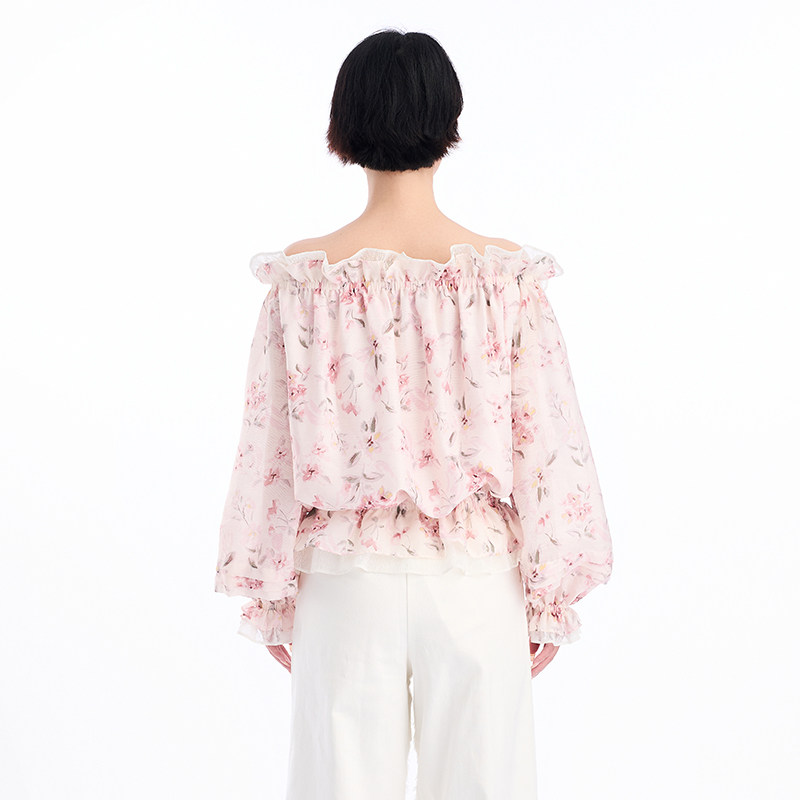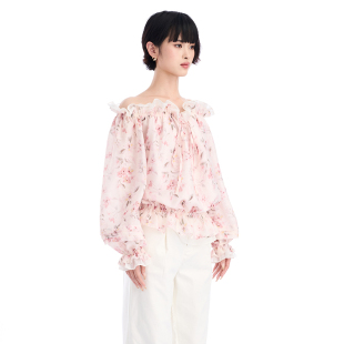 上衣银泰百货 女士一字肩木耳边衬衫 301489 新款 EIMISMOSOL