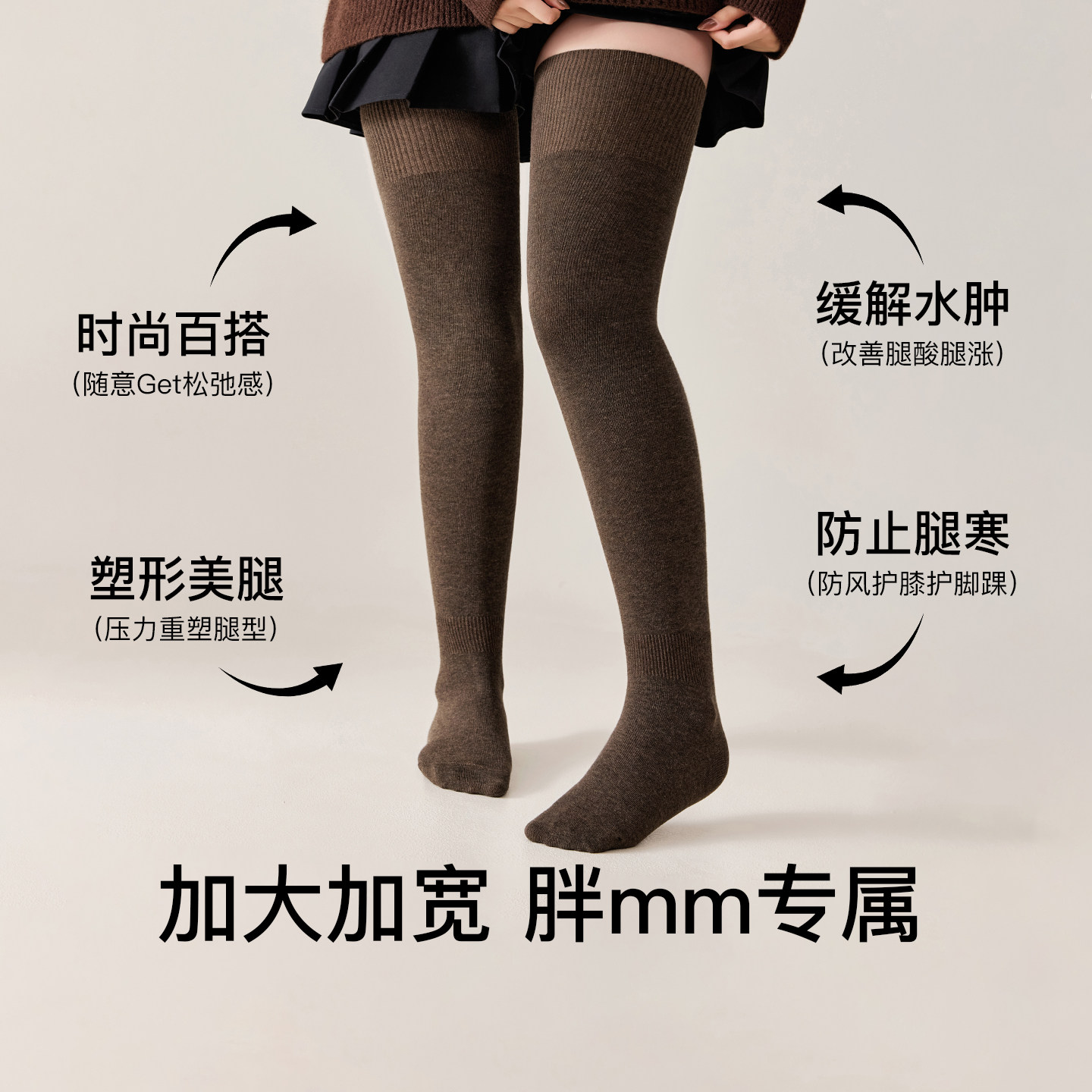 加大码 大腿袜胖MM粗腿微压显瘦秋冬护膝保暖长筒袜 过膝袜子女秋季