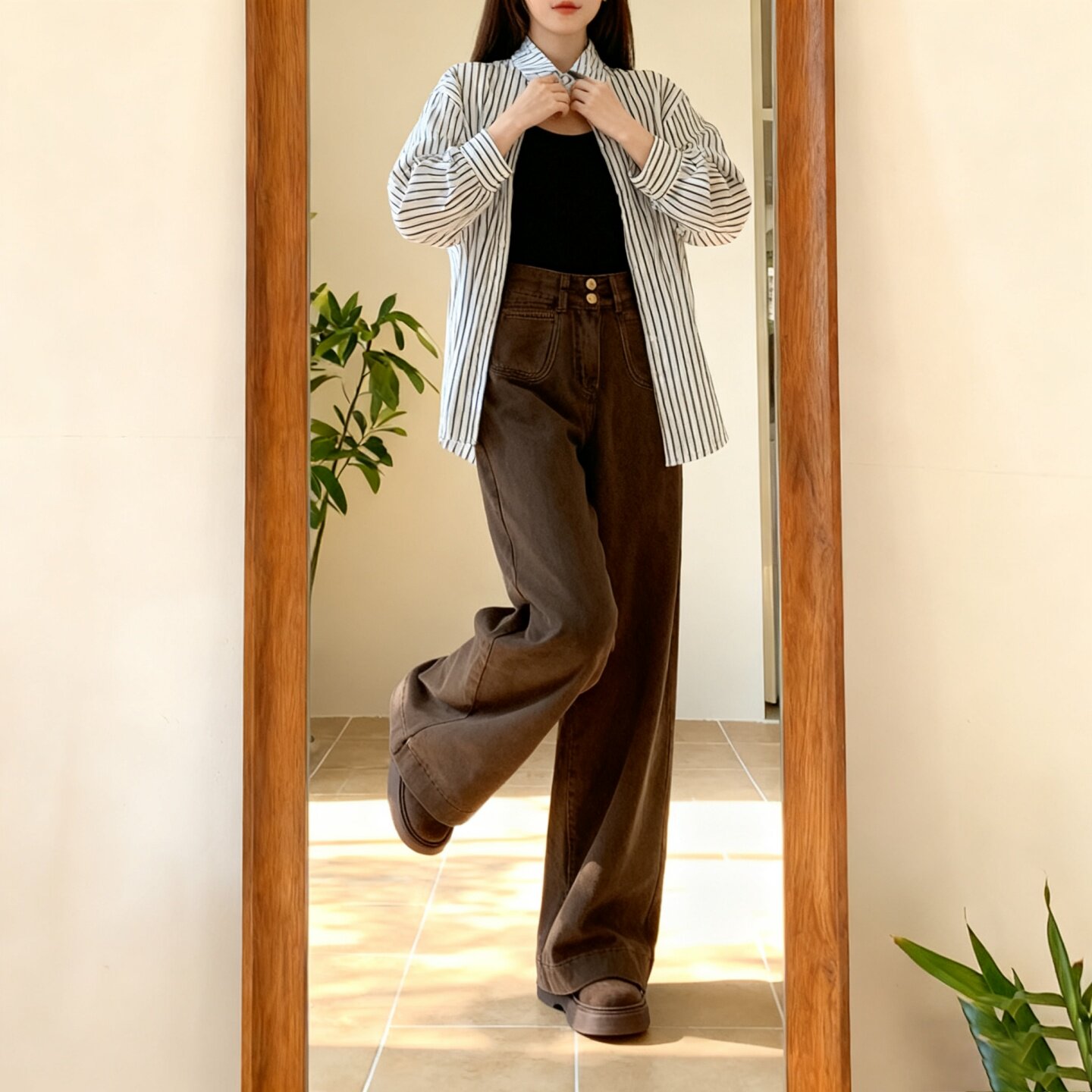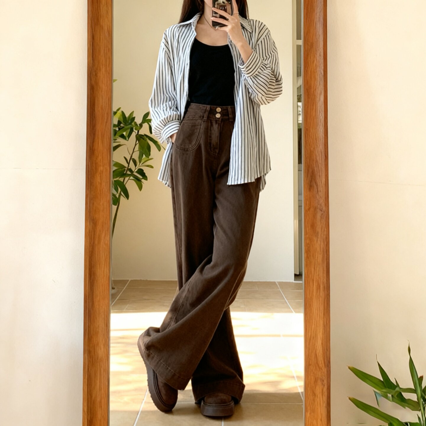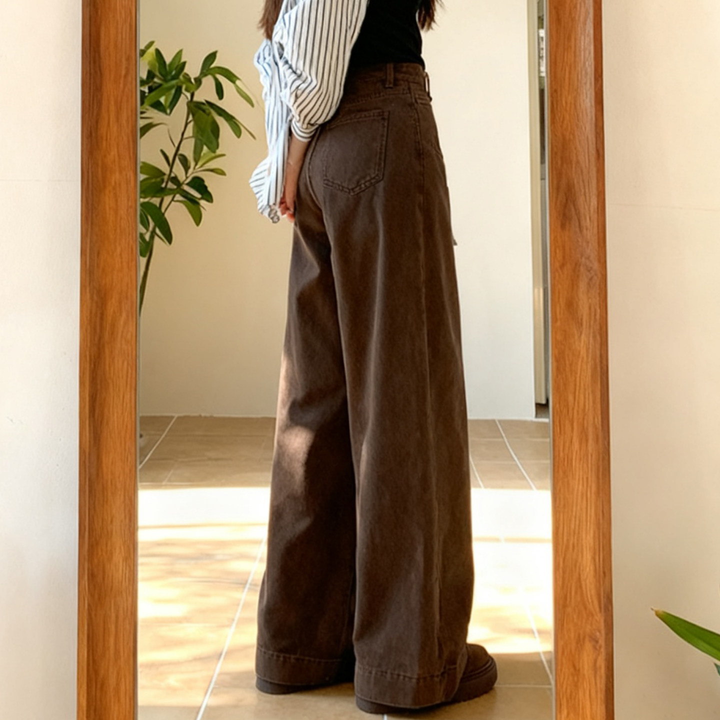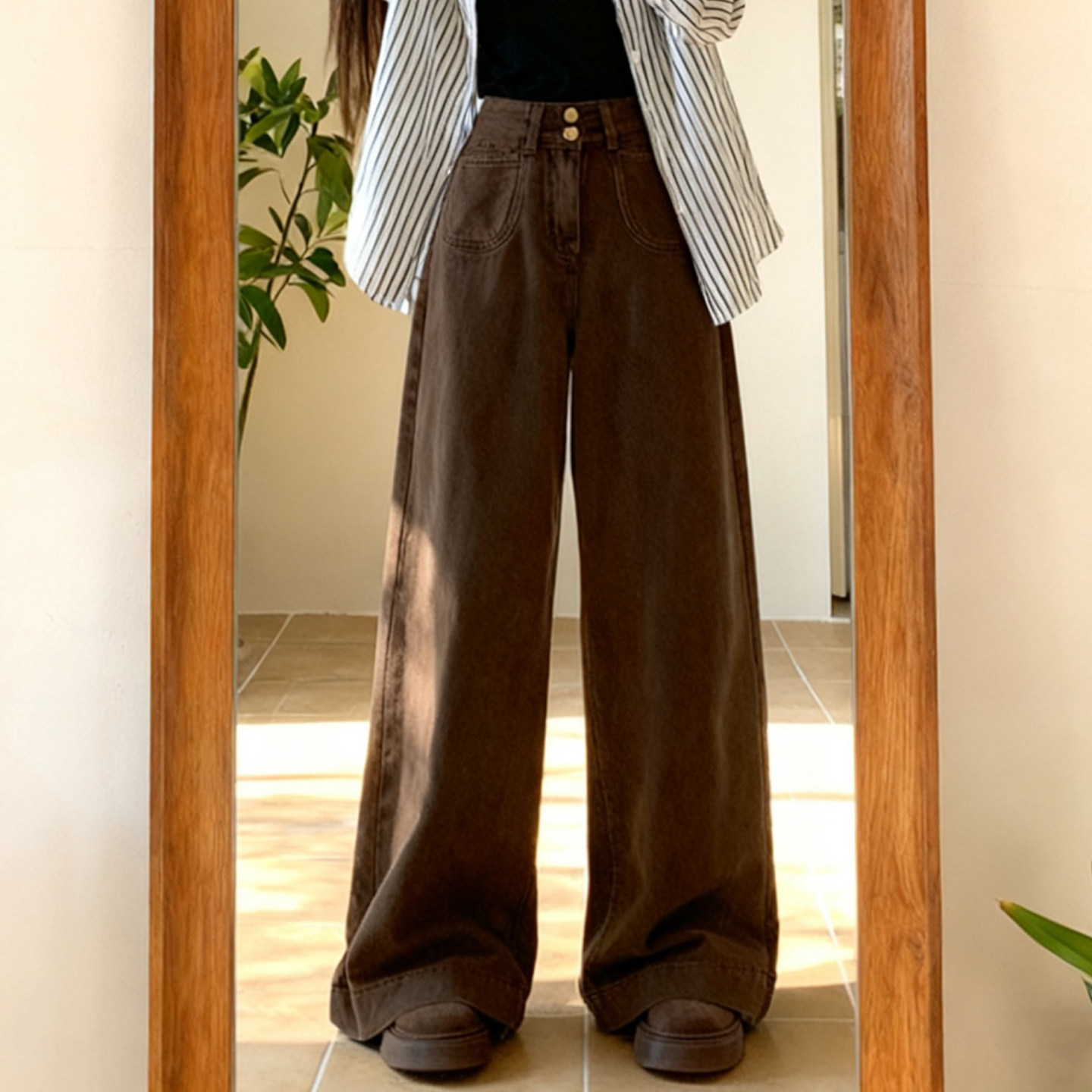 女高腰显瘦垂感拖地裤 胖mm梨型身材复古百搭阔腿牛仔裤 女装 特大码