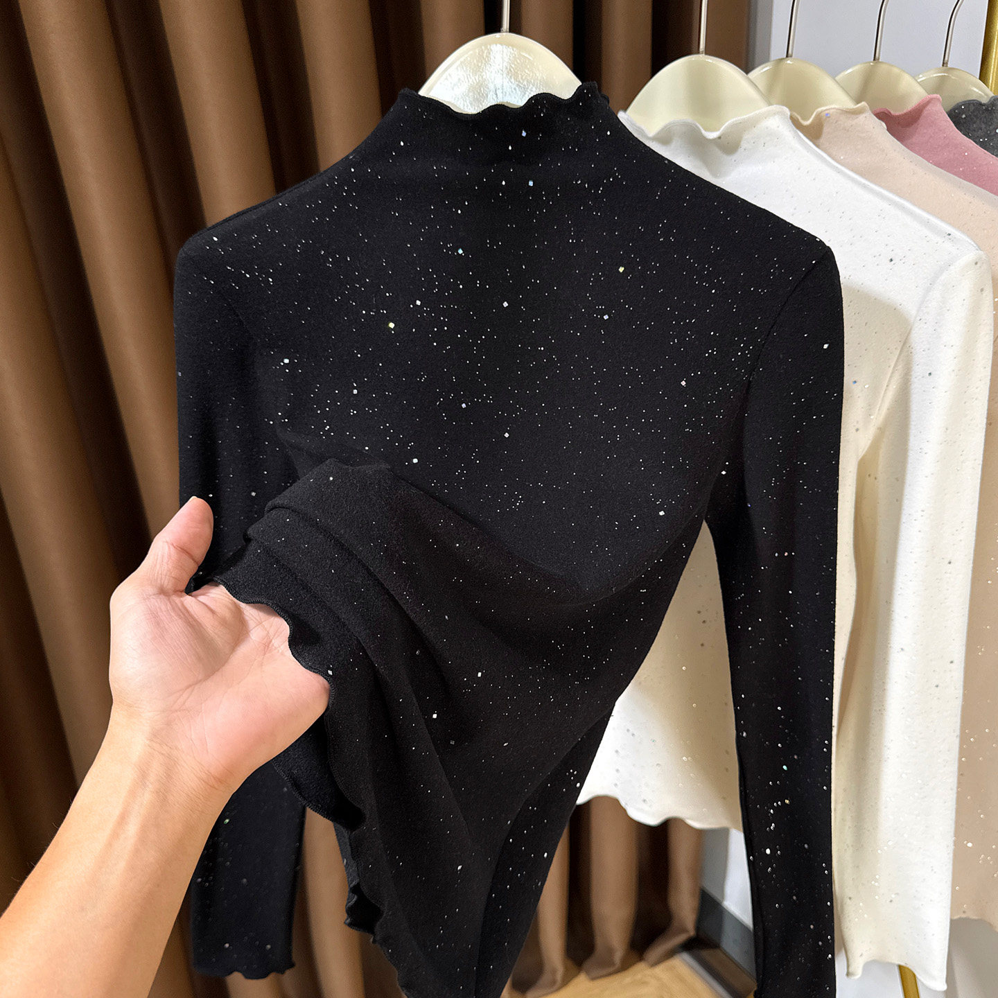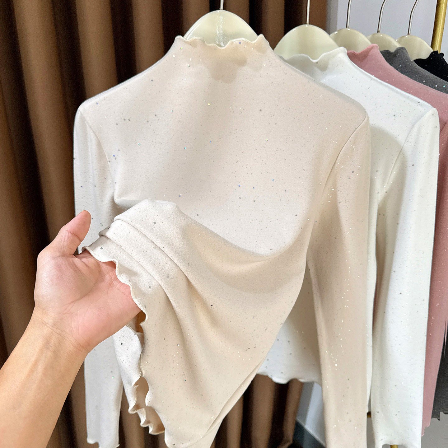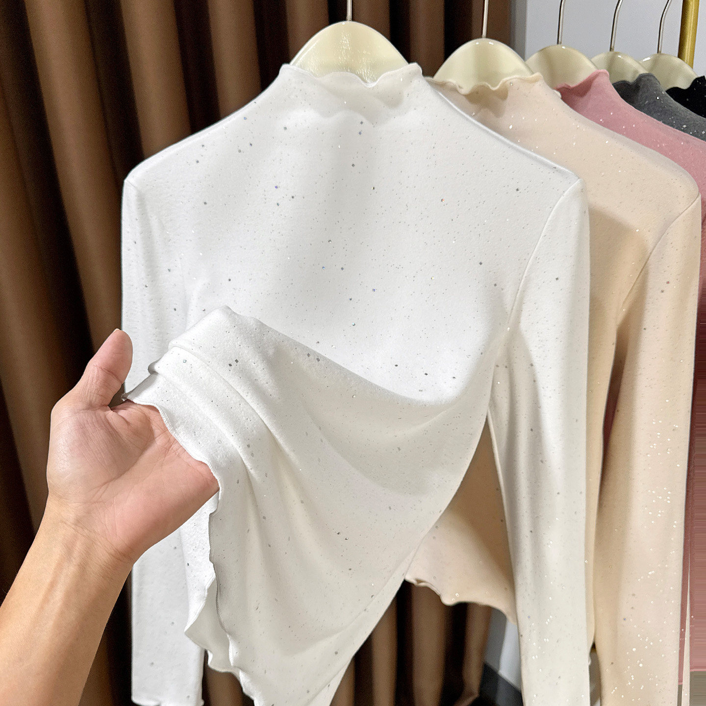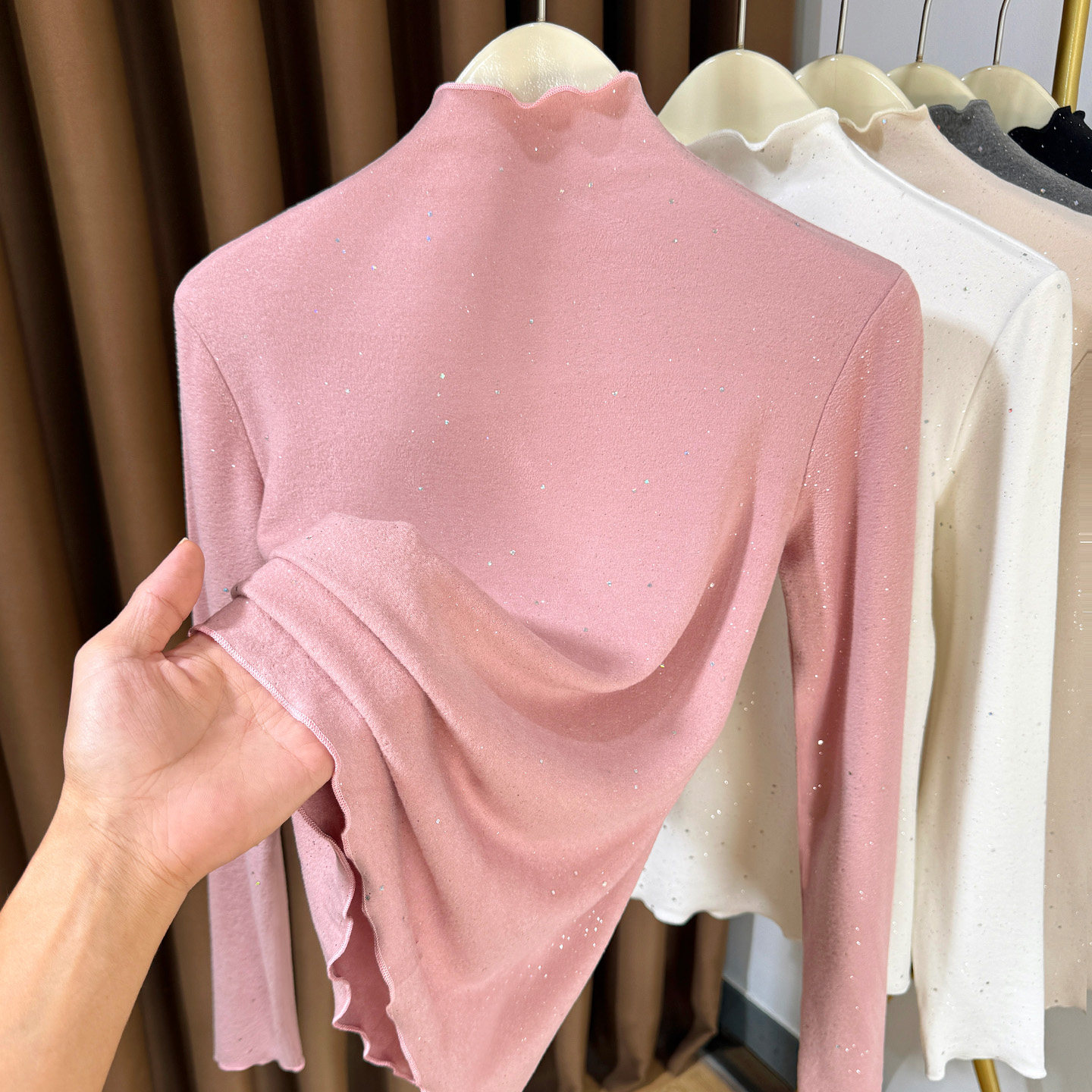 t恤小衫 半高领德绒长袖 女内搭2025新款 木耳边双面磨毛洋气打底衫
