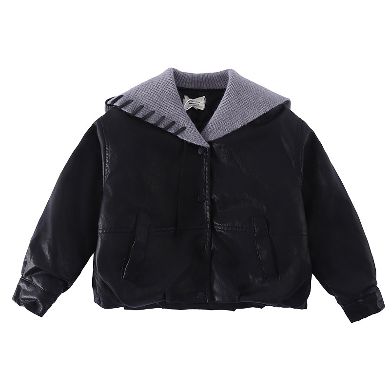 511310 简约翻领加绒软皮衣夹克上衣女装 三福厚外套女2025新款 冬季
