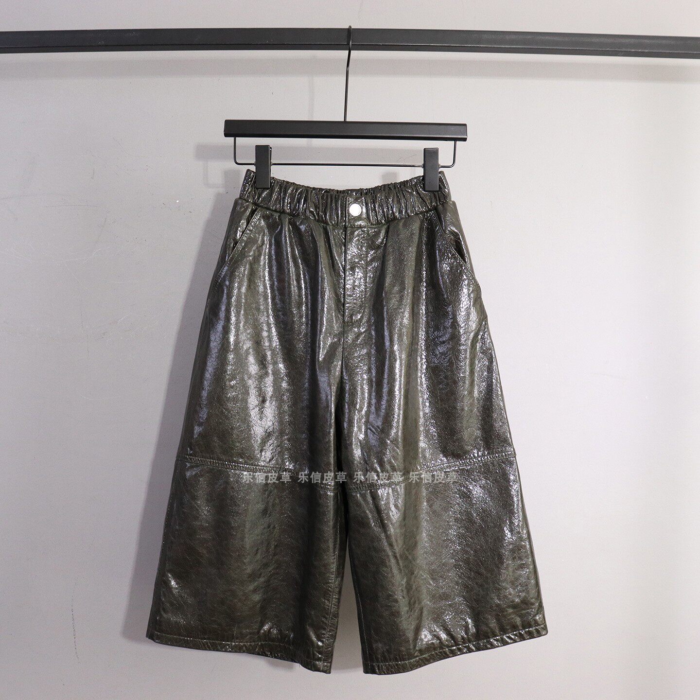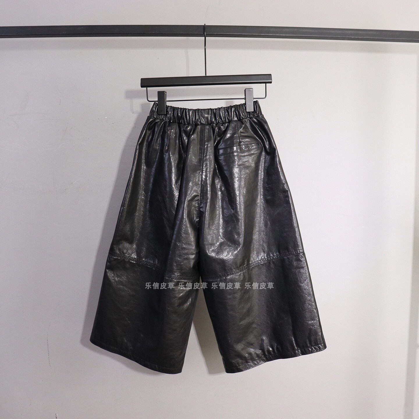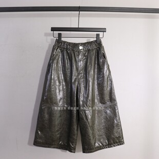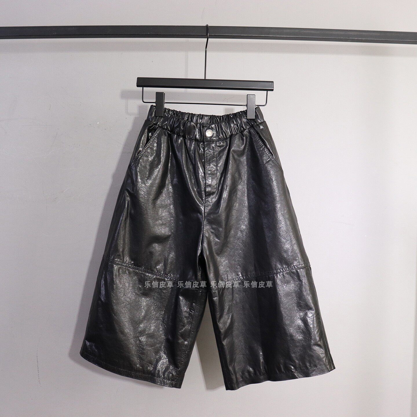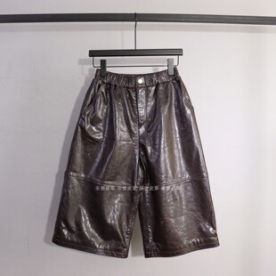 七分裤 新款 百搭气质松紧腰显瘦宽松阔腿裤 女绵羊皮时尚 真皮皮裤