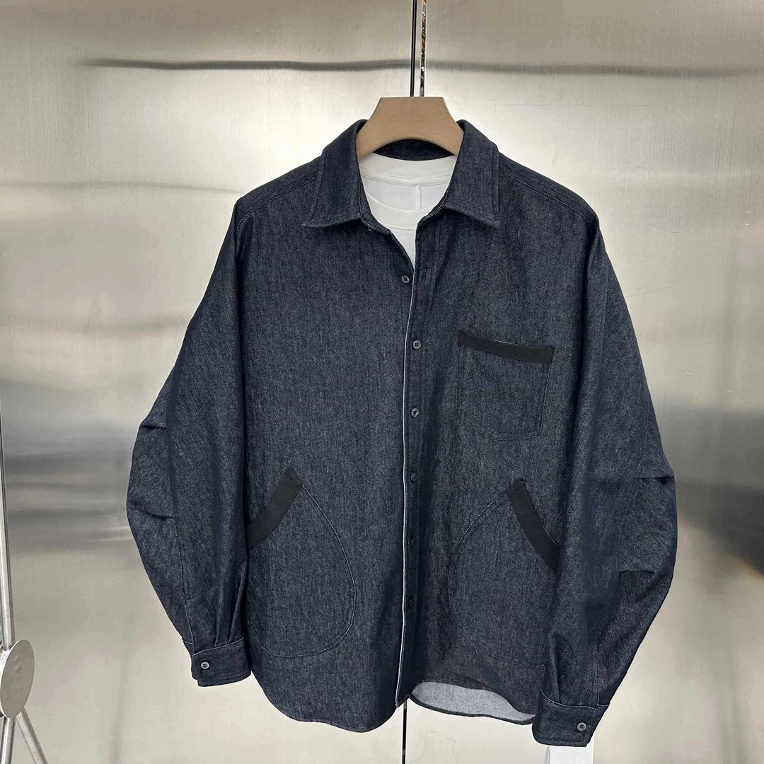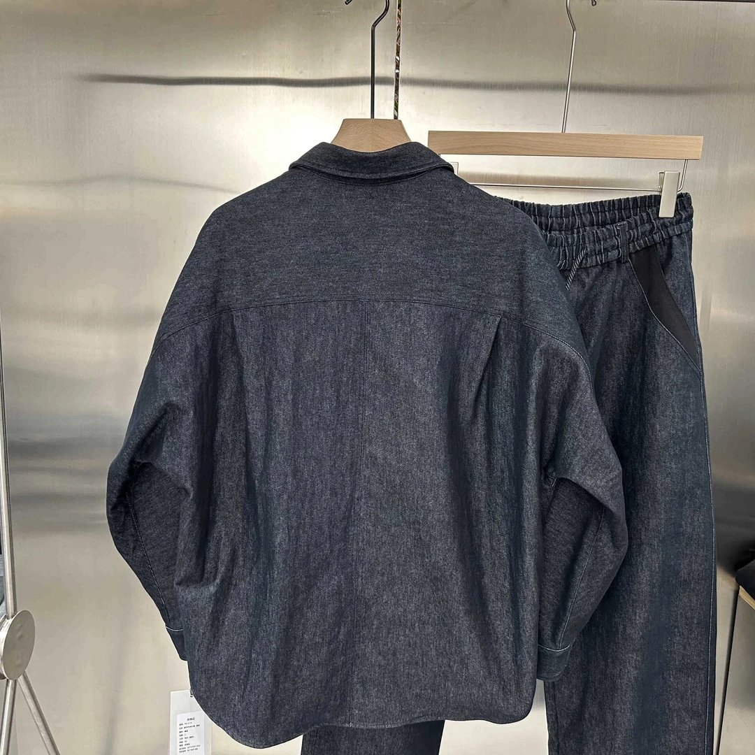 潮流宽松痞帅裤 男美式 子两件套 300斤秋复古拼色水洗牛仔衬衫 大码