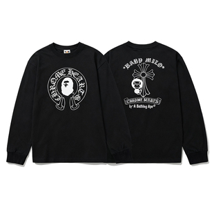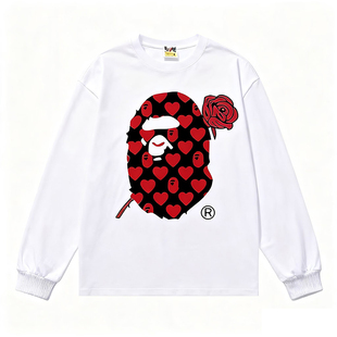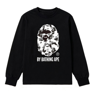 BAPE猿人迷彩打底衫 本SHARK 纯棉300g亲子 T恤重磅高版 潮牌APE长袖