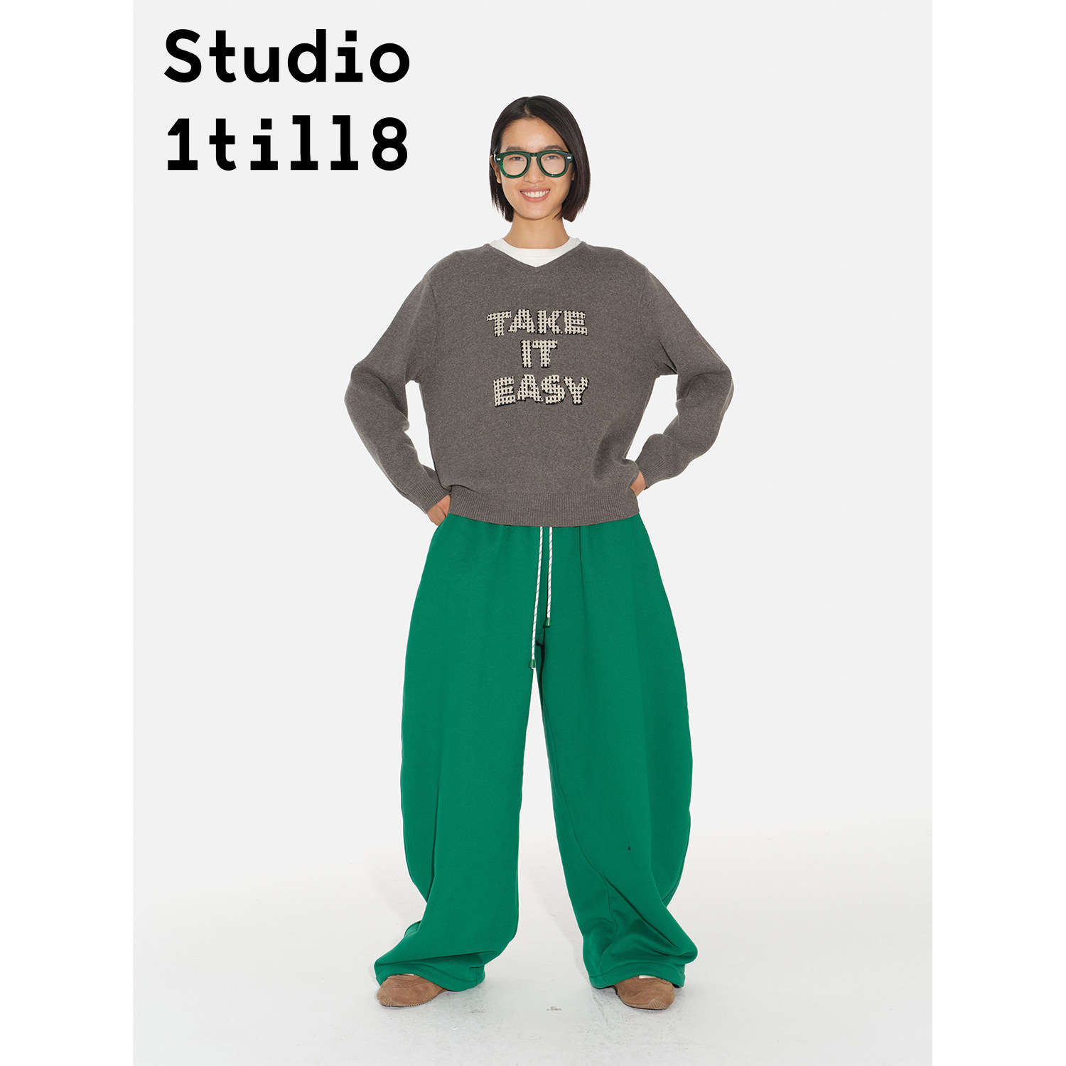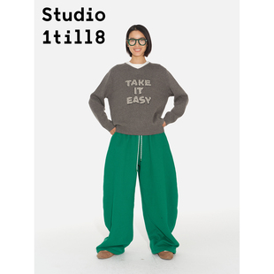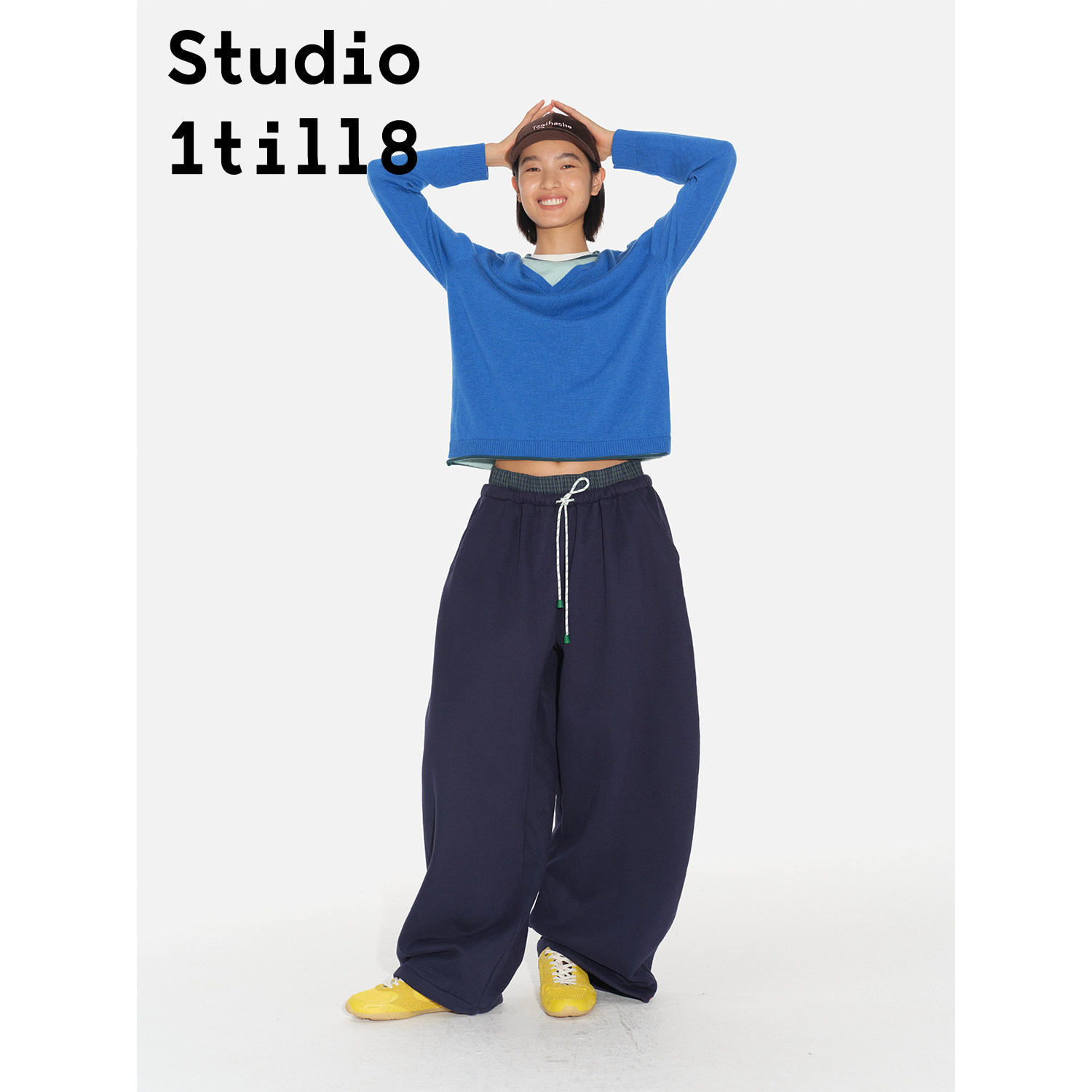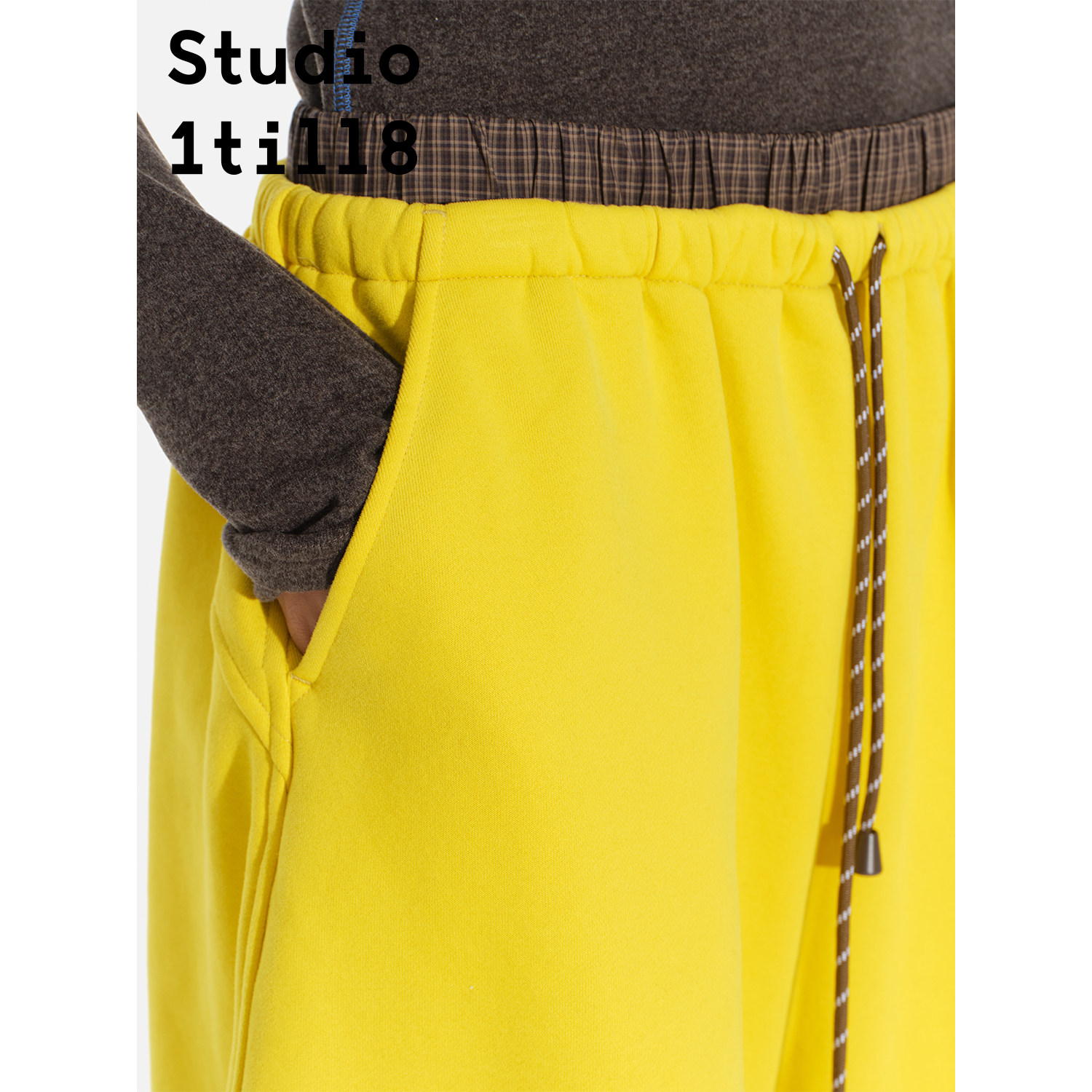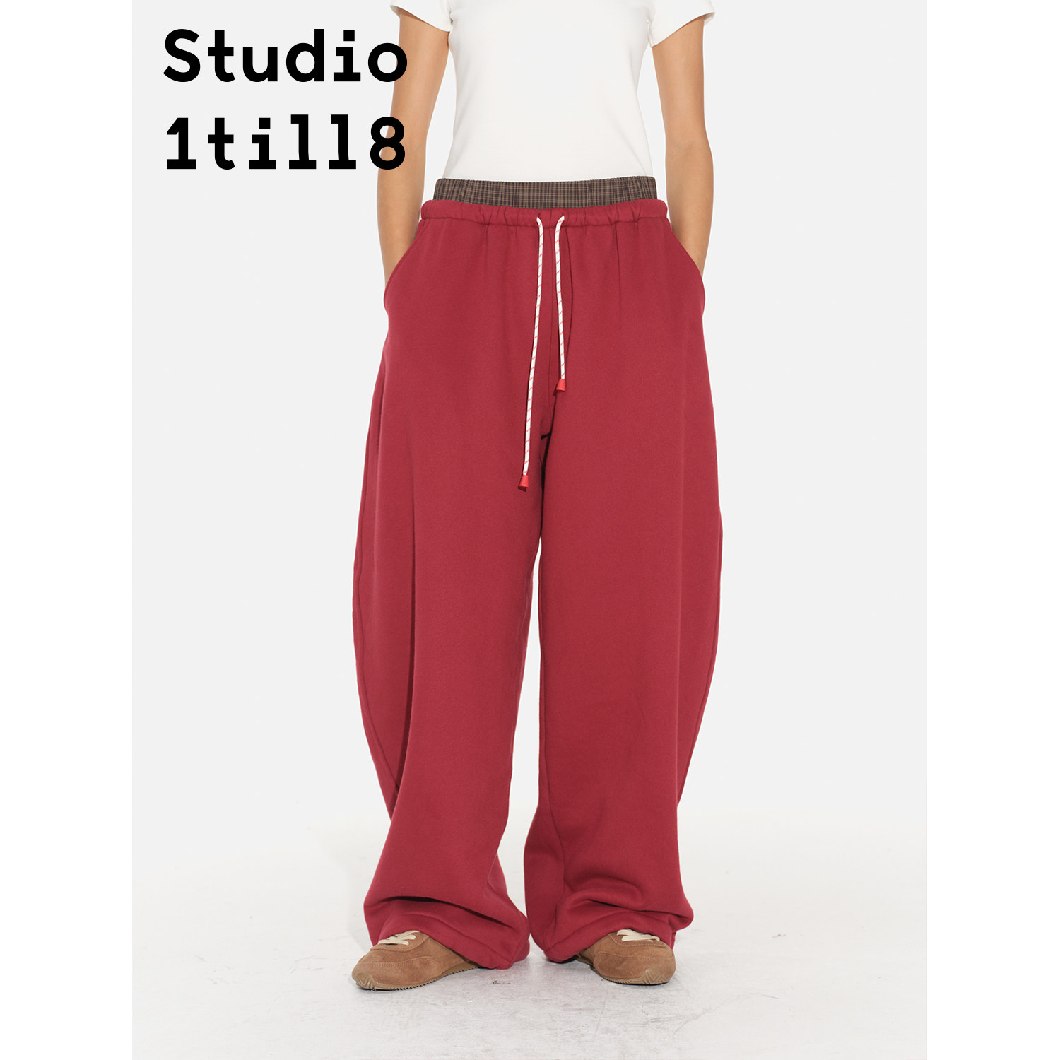 藏青 廓形松紧腰抽绳宽松加绒长裤 红色 绿色 黄色 Studio1till8