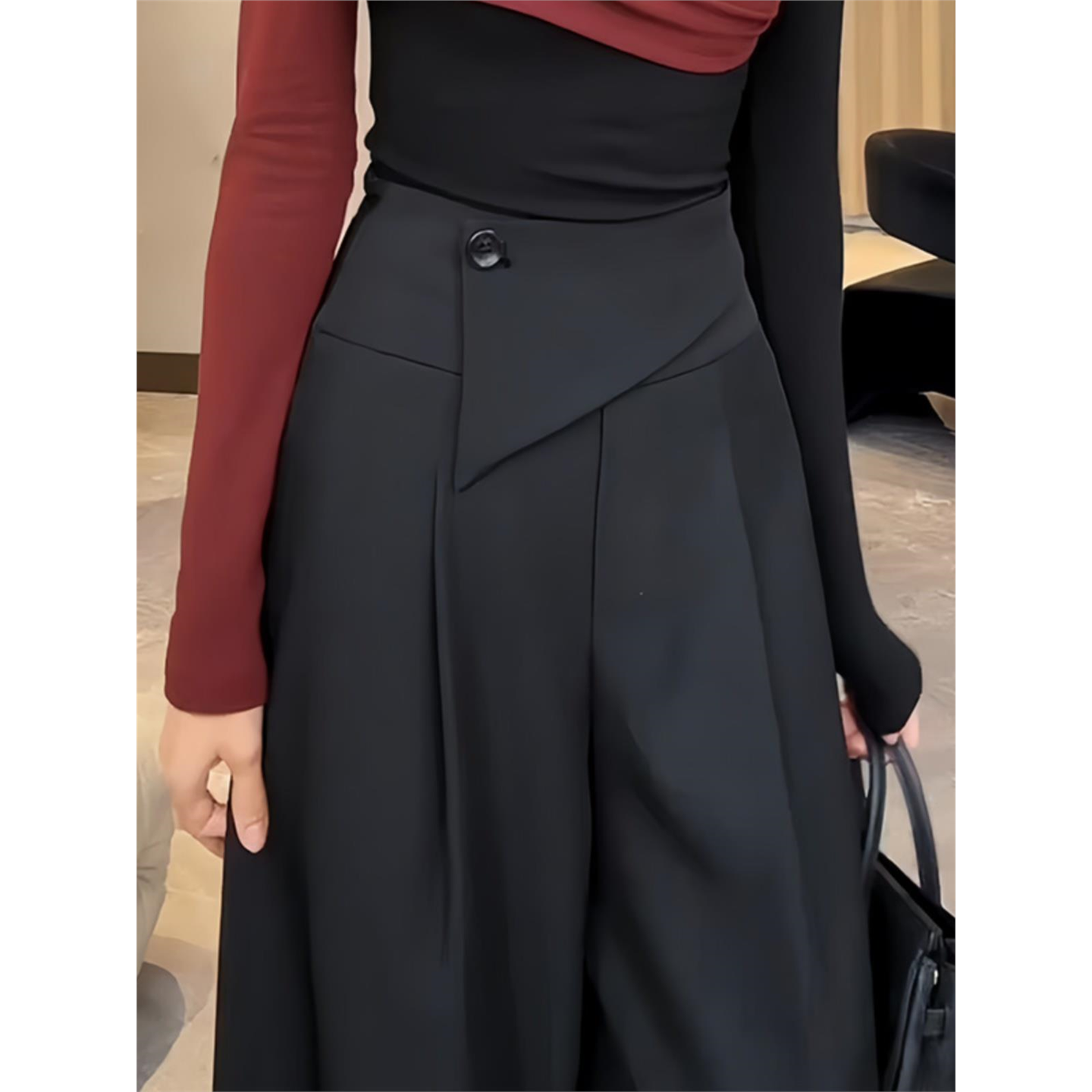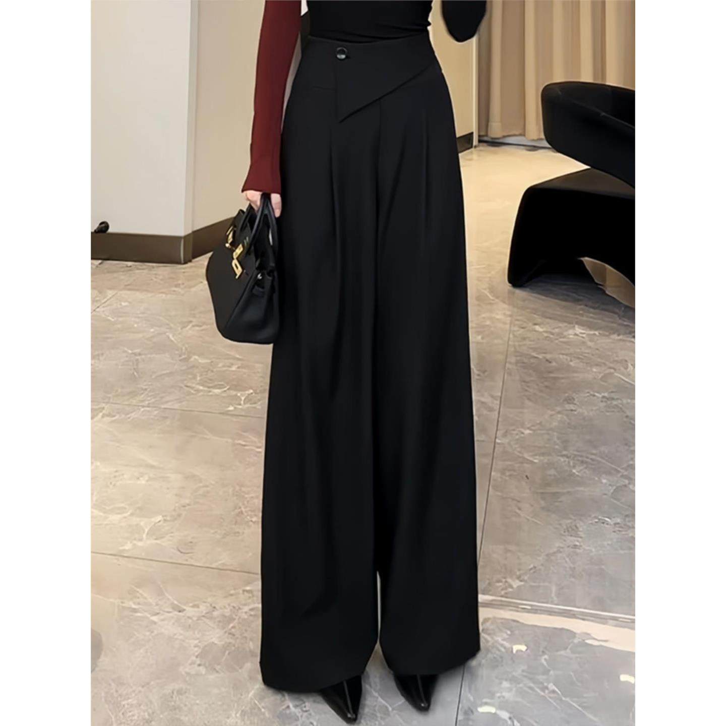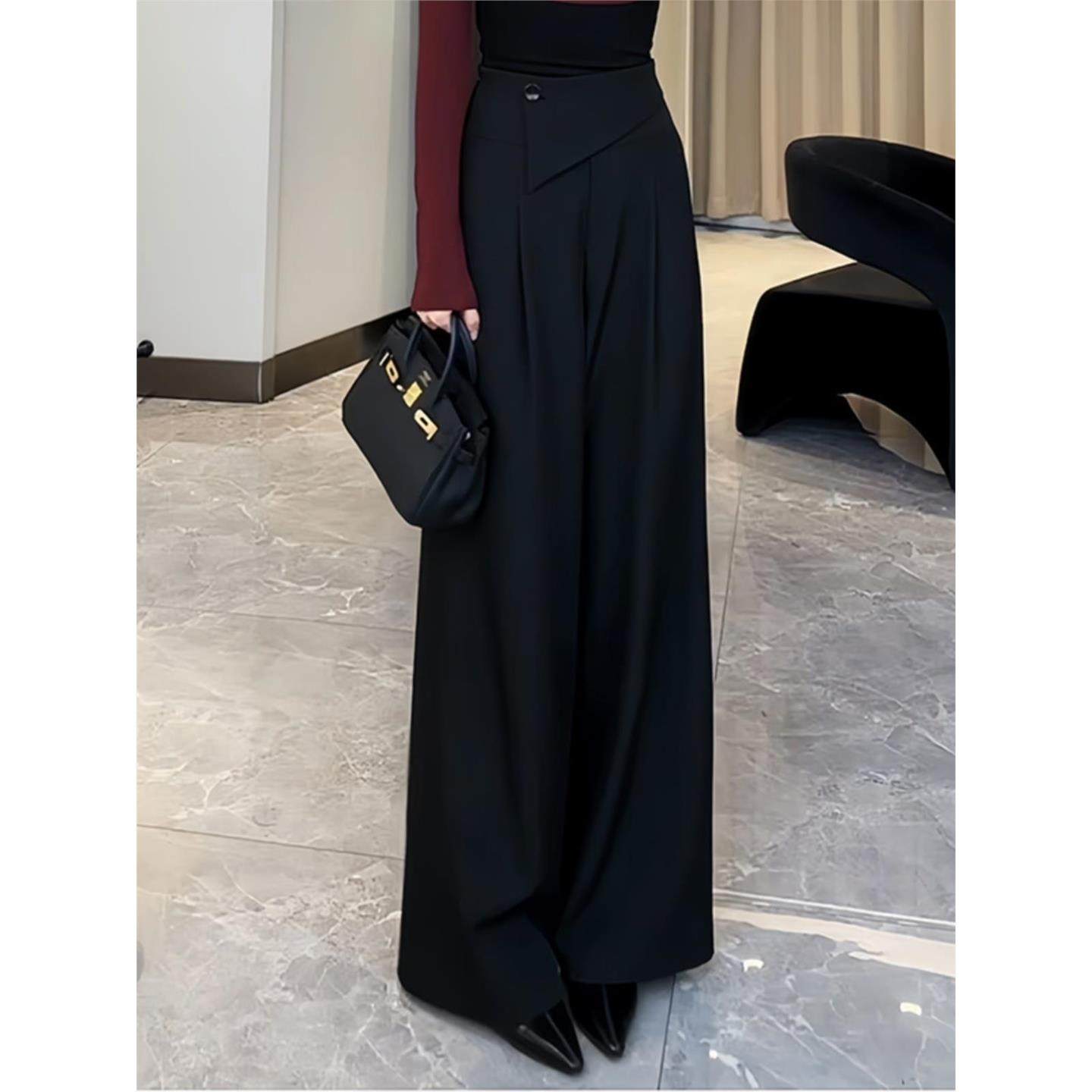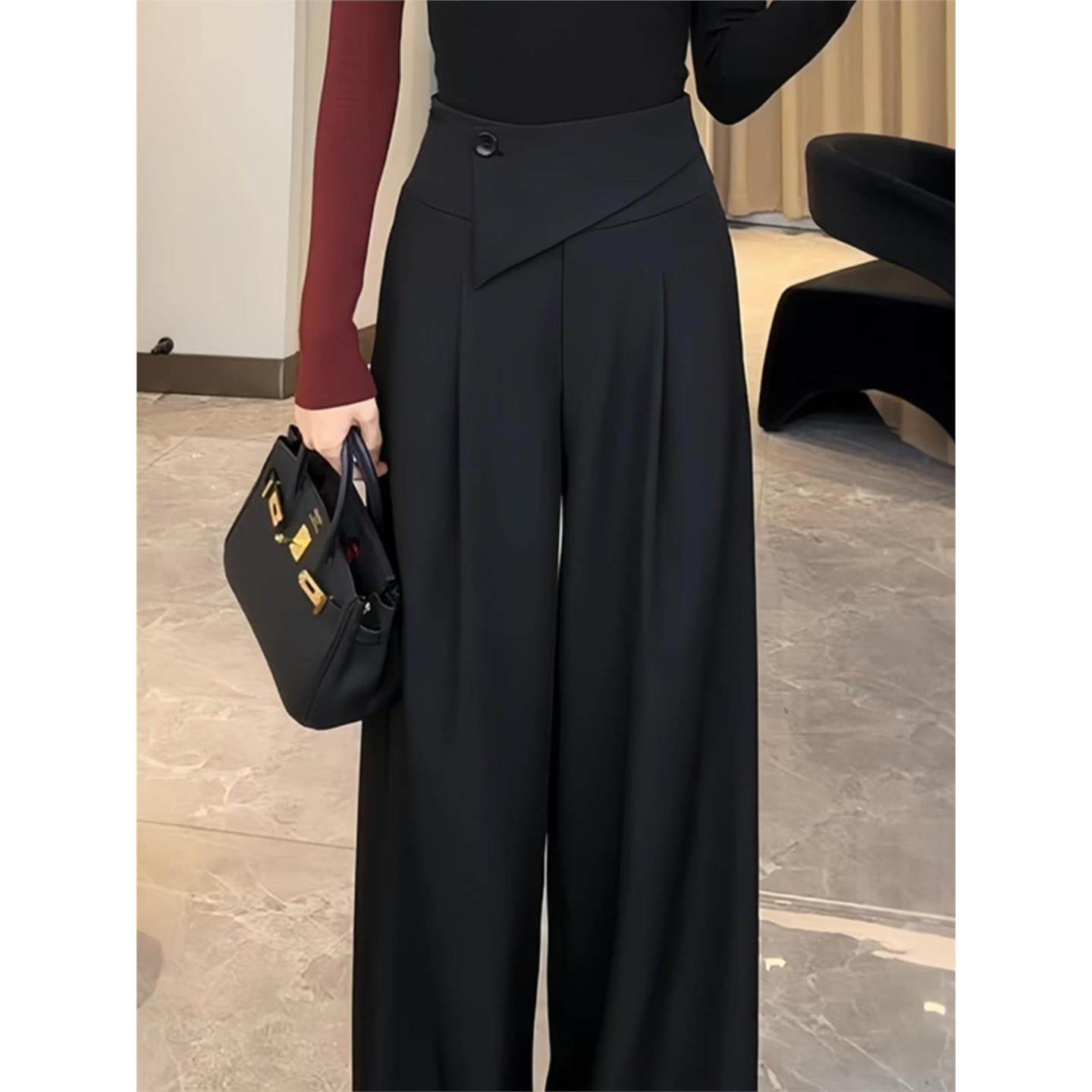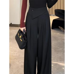 秋冬季 休闲显瘦直筒裤 黑色收腰阔腿西装 女拖地长裤 裤 深圳南油女装