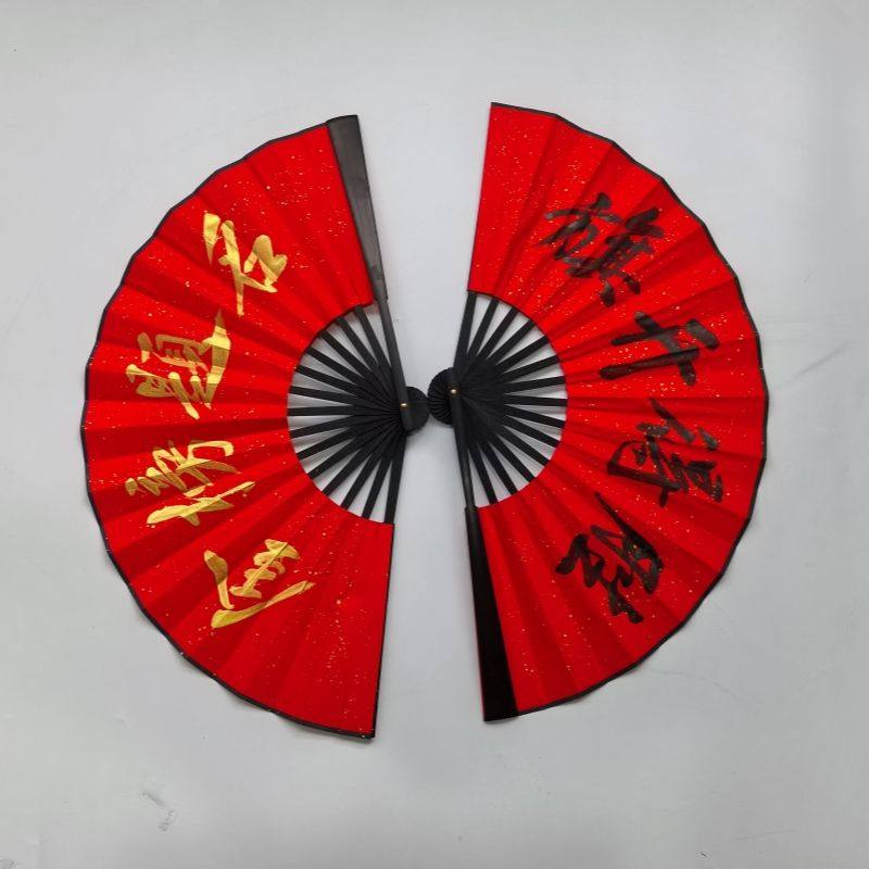 雪龙吟舞蹈扇子功夫扇中国风太极扇响扇专用双面红色折扇跳舞道具