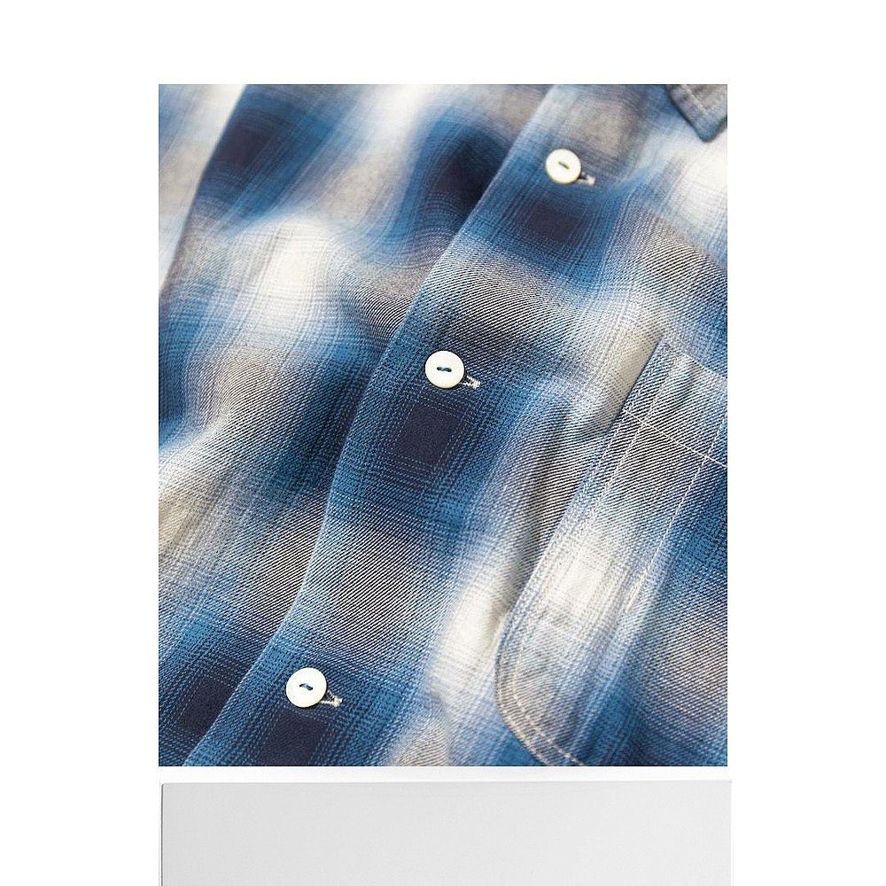 双色水洗磨毛长袖 几立 牛仔衬衫 夕阳倒映在蓝色天际