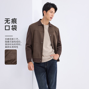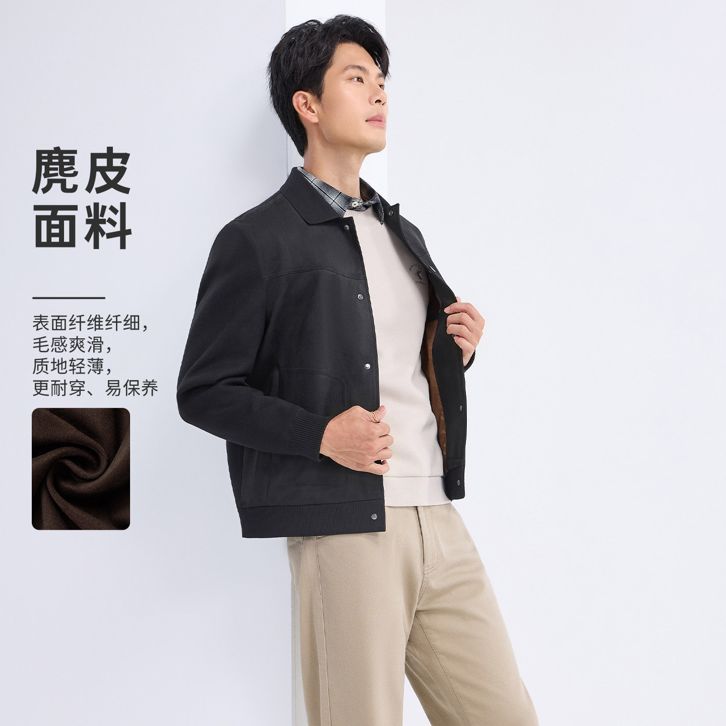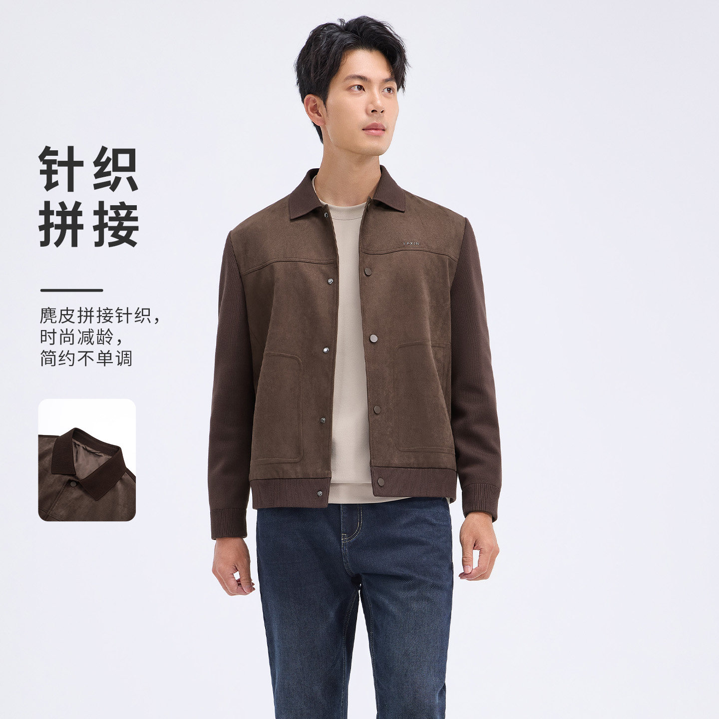 男装 莱克斯顿2025秋冬新款 后背针织 翻领夹克拼接外套 前身麂皮