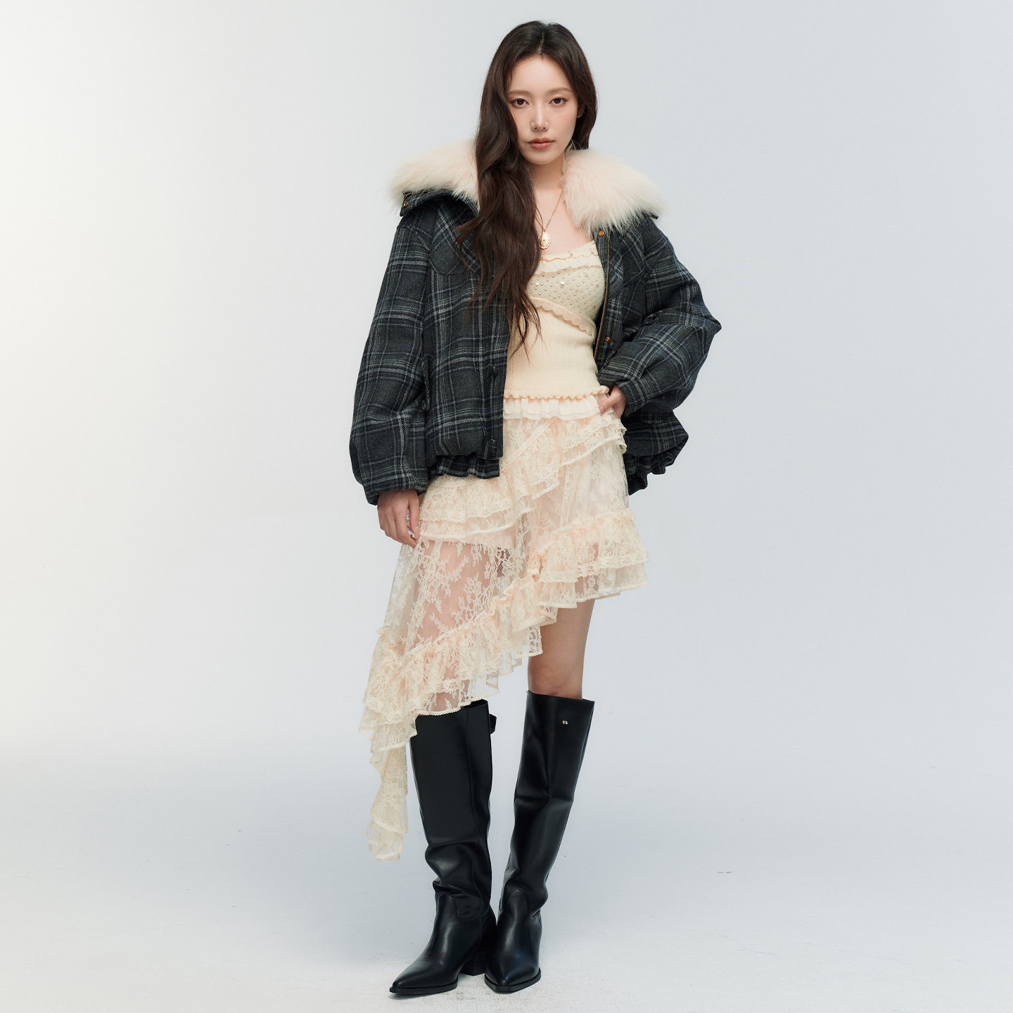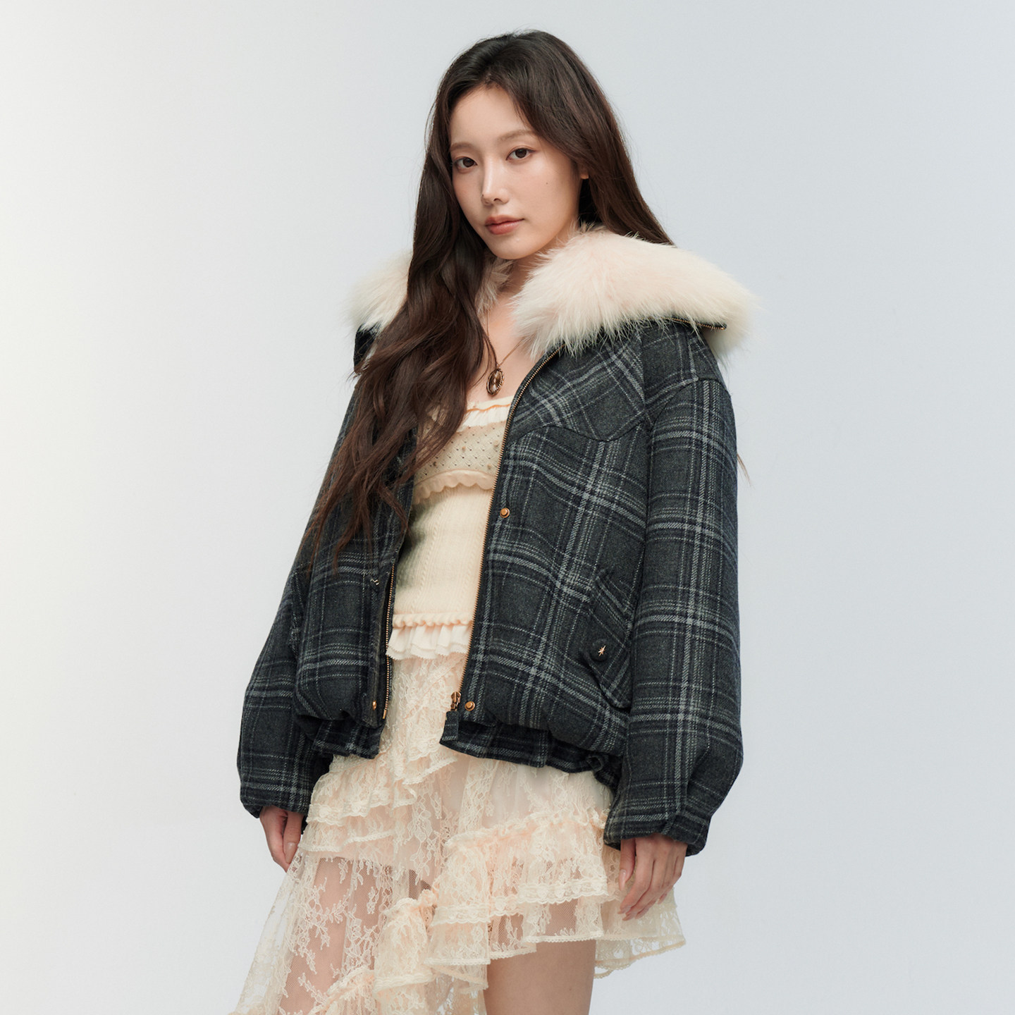 毛领装 ORA 时尚 新品 饰格纹羽绒服 GENESIS2025年冬季
