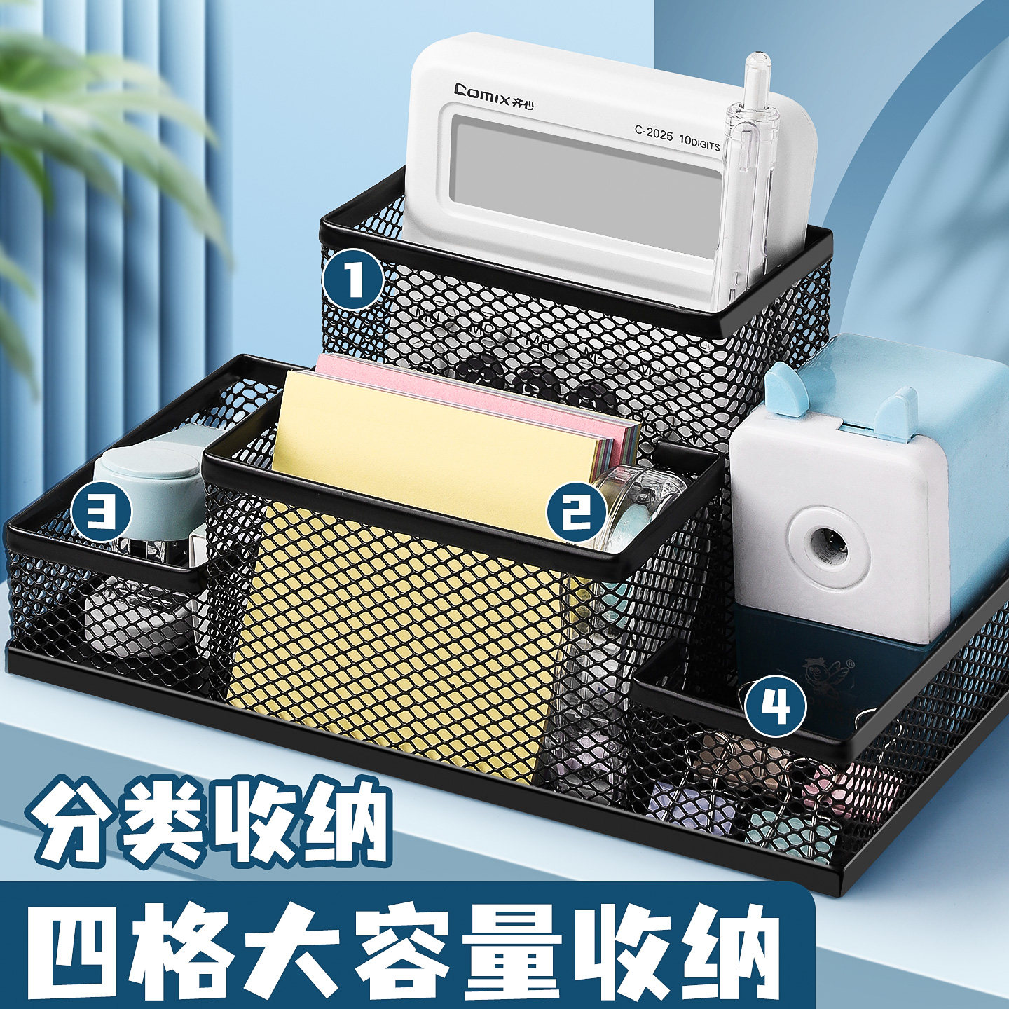 多功能金属笔筒装 笔放笔铁笔筒收纳盒学生桌面文具收纳摆件笔座笔架创意办公用品笔桶笔插大容量收纳多格笔筒