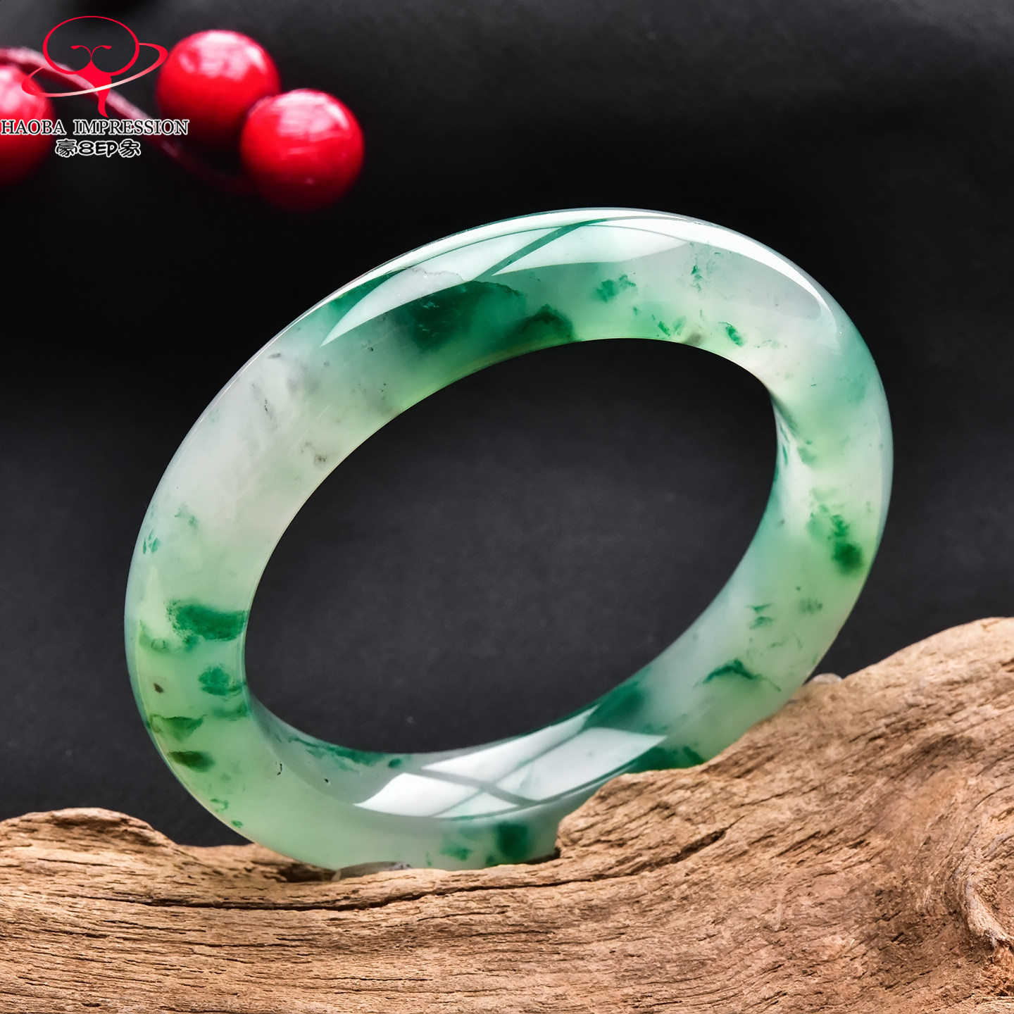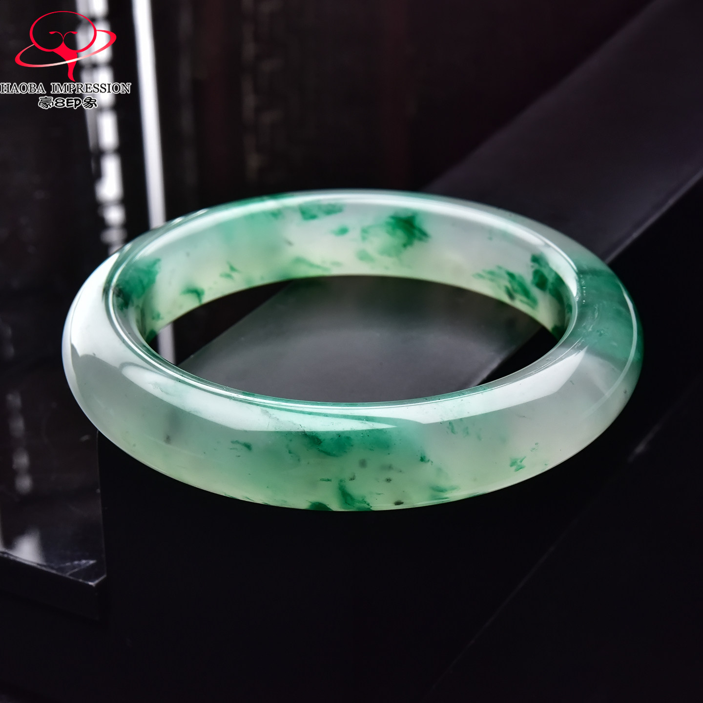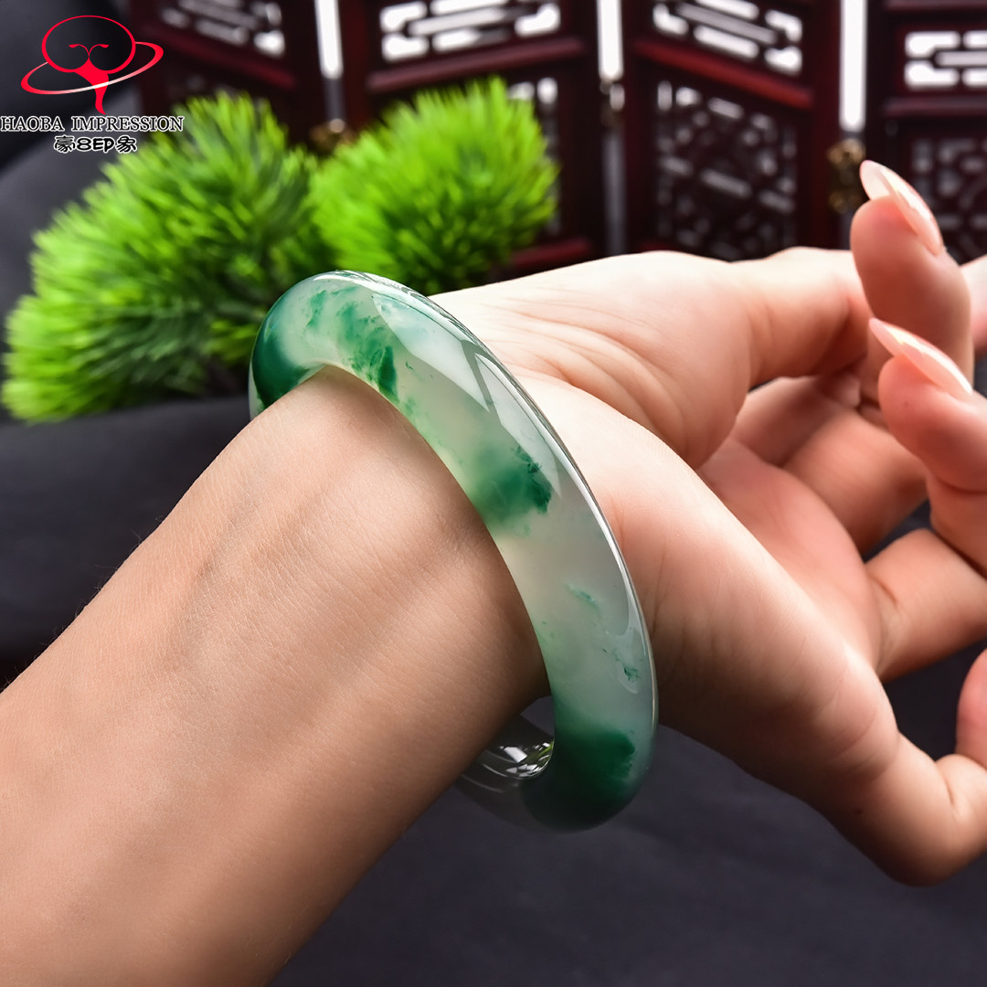 豪8印象翡王妃F825080F120非洲翠手镯圈口55.1mm冰种绿飘花玉手镯