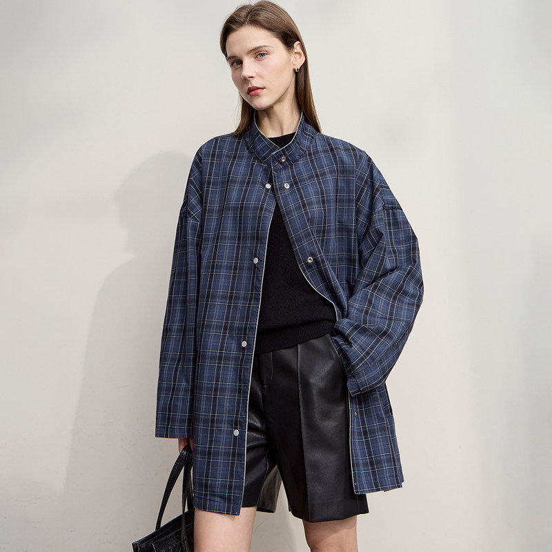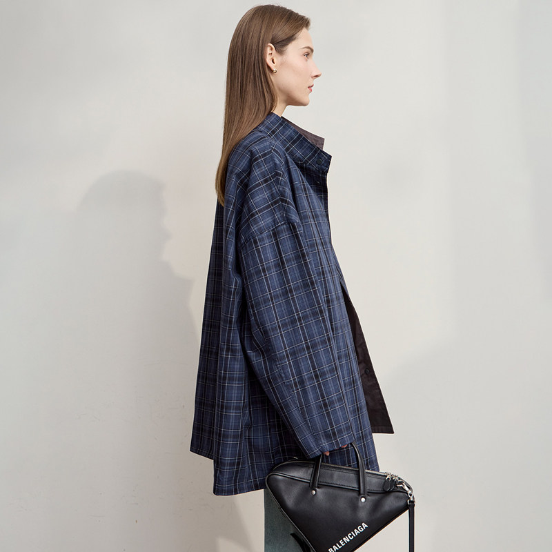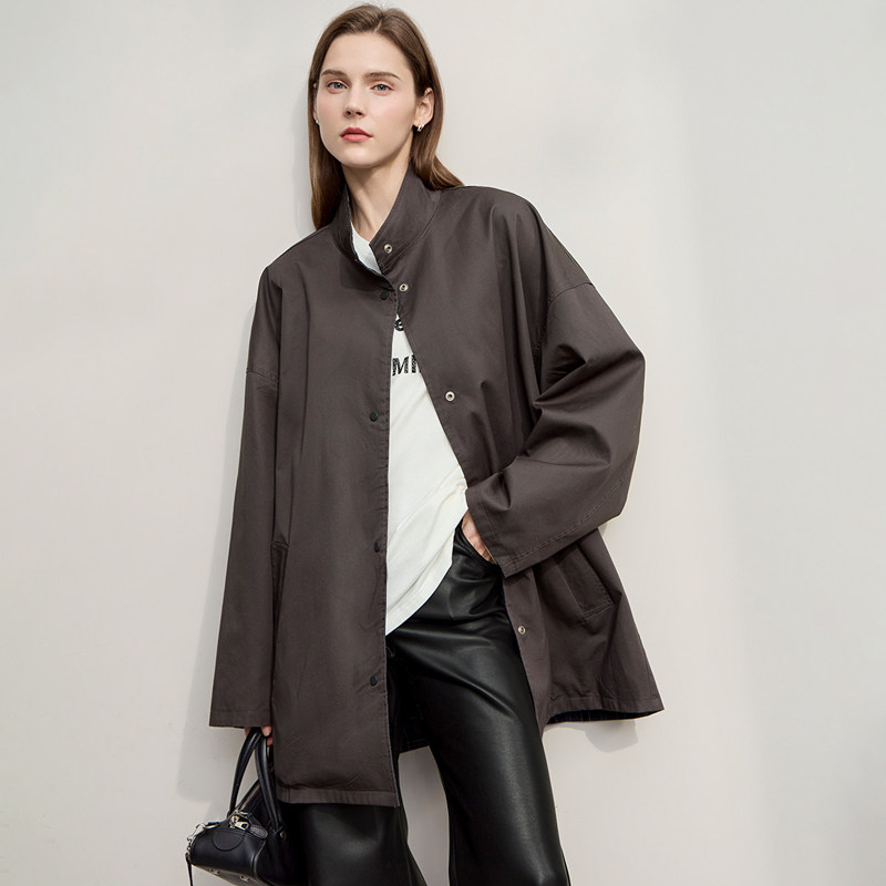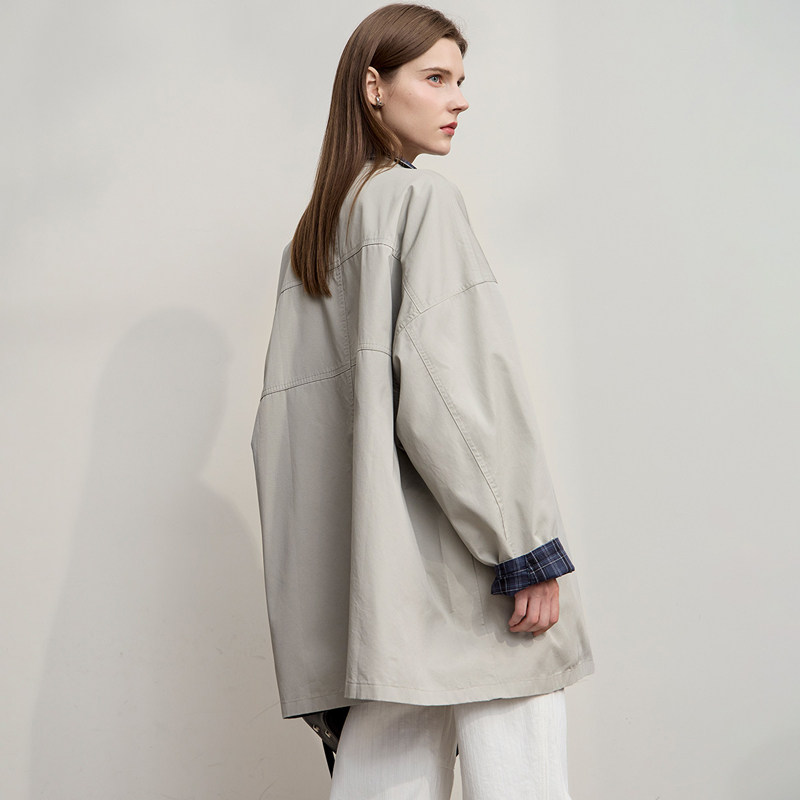款 25秋简约日系风两面穿中长款 立领风衣外套 日系风两面穿 Amii